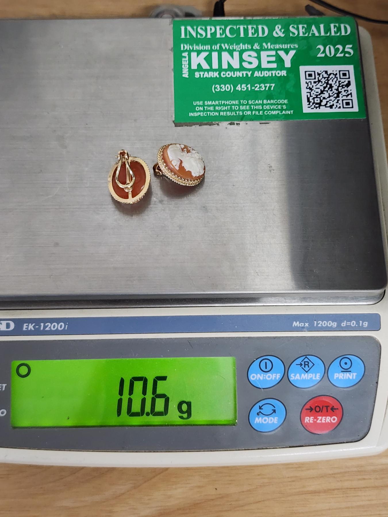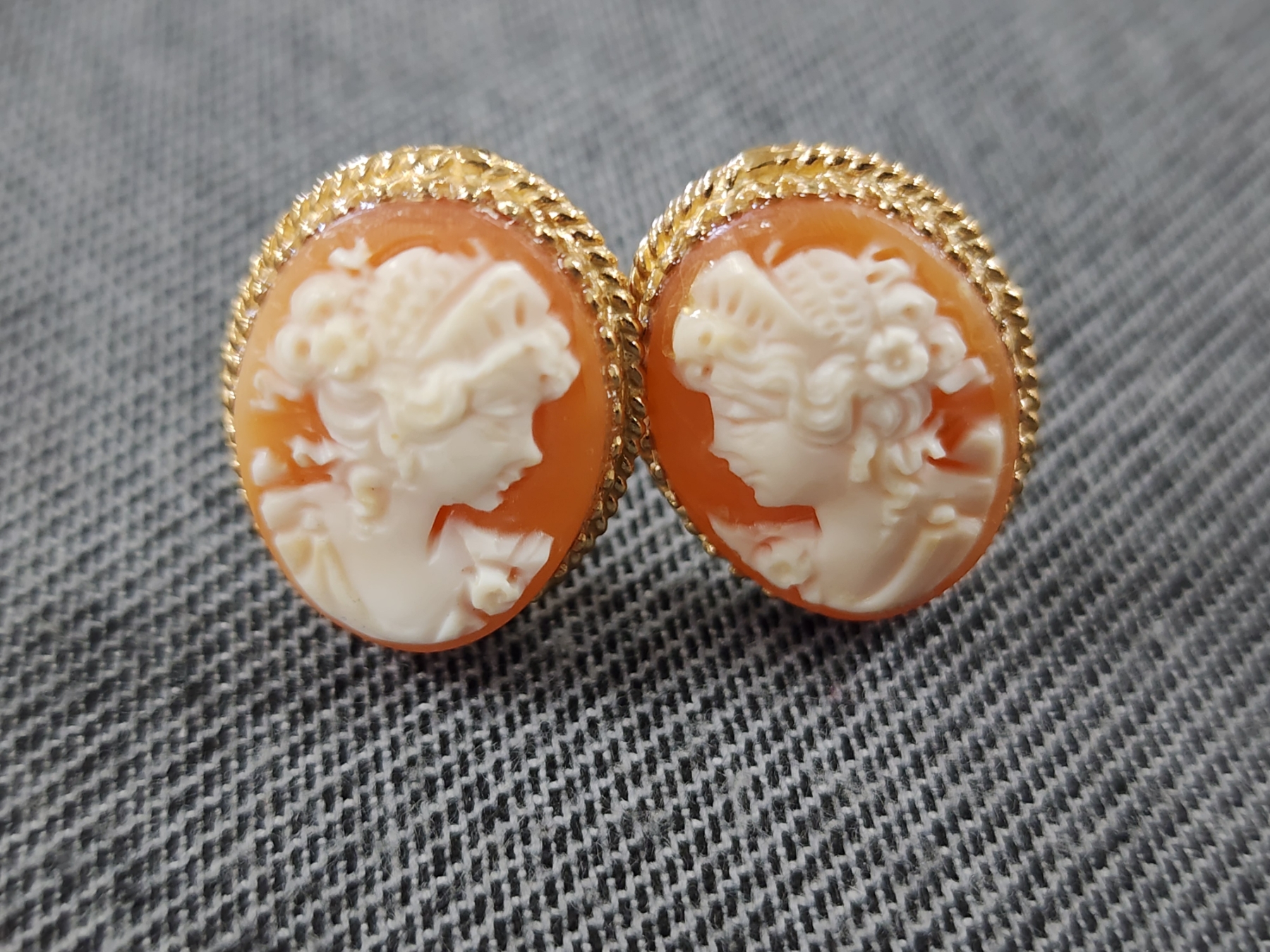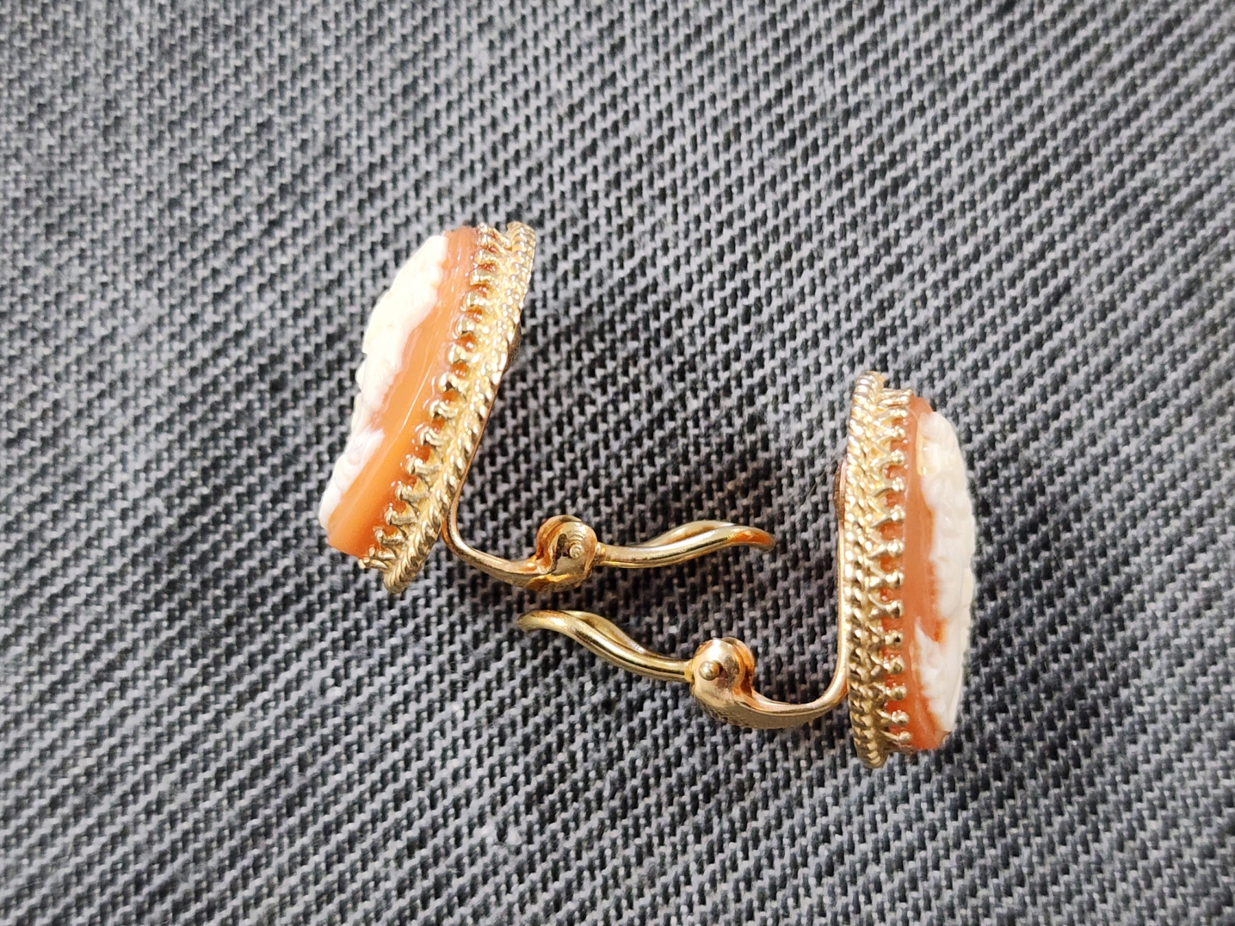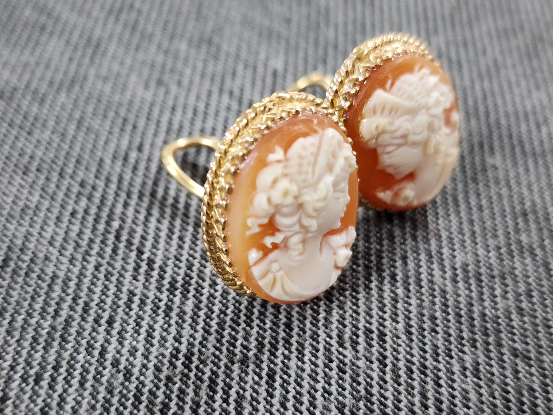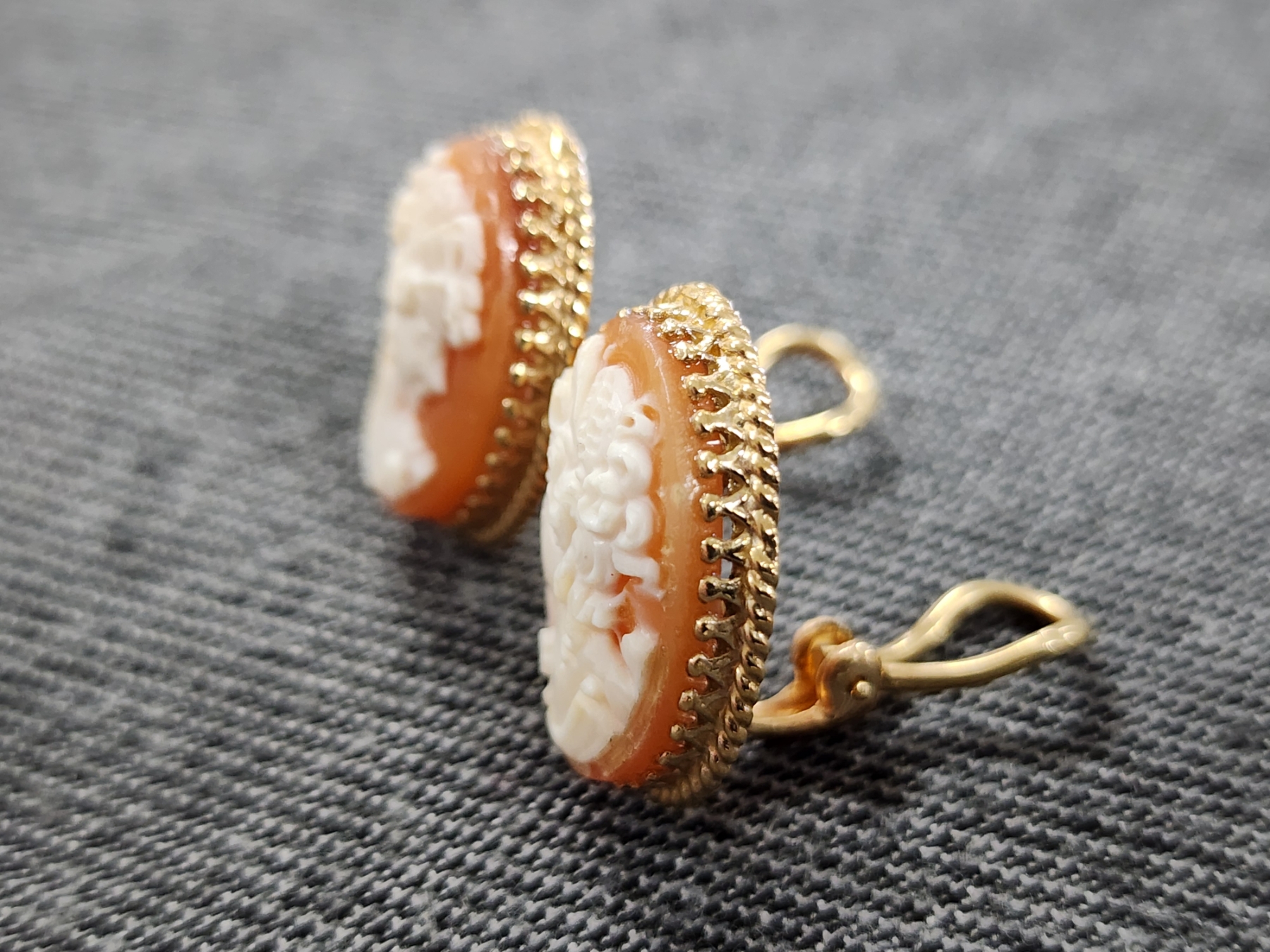 14K Gold Cameo Earring Set - Weighing 10.6 Grams