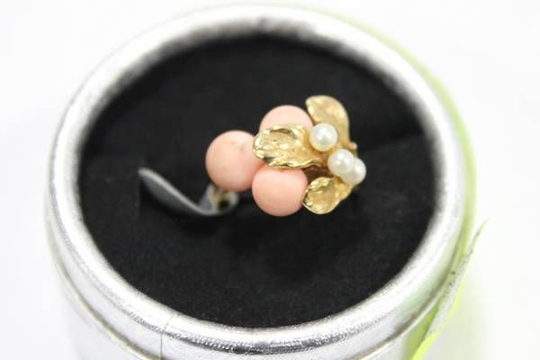 14K LADIES RING W/ COLOURED PEARLS SIZE 6.75
