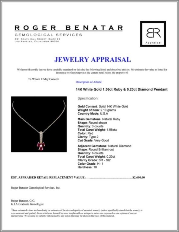 Regarding Appraised Jewelry and Loose Stones - Auctionfarm sends them out to a third party for Retail Replacement Value Appraisals, which are the most common. These types of evaluations are written for insurance needs. This would be the cost to replace the jewelry with an item of equal quality and kind, considered to be the current market price or the replacement value. This type of appraisal is done to protect you in the event of damage or loss of a valuable item. Our appraisals are conducted by independent 3rd Party appraisal firms that utilizes Certified GIA Gemologist. Appraisals should be used for verification of gemstone and/or metal weight, size, and grade only, not actual value. Appraisal value should be considered for insurance purposes only, not actual value, as price varies greatly from retail locations thru out the world. Items should not be purchased with the expectation to resell for appraisal price, or for profit.