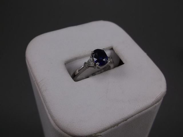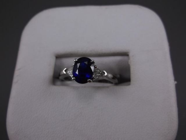 14K White Gold 1.65ct Sapphire and Diamond 3-Stone Ring Sz-6 3/4 Weight: 3.5 Grams Retail: $9,700.00