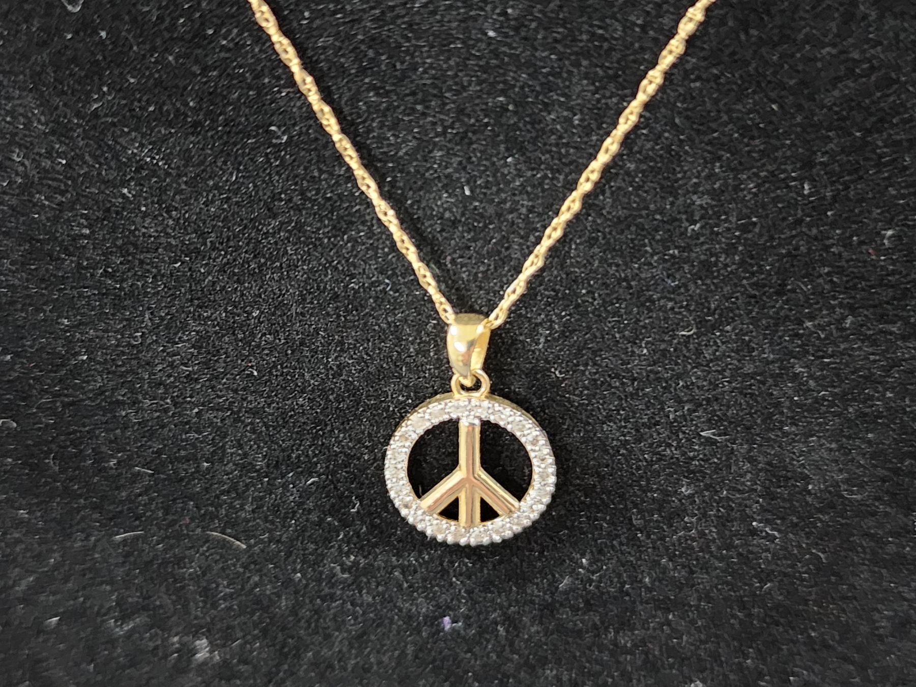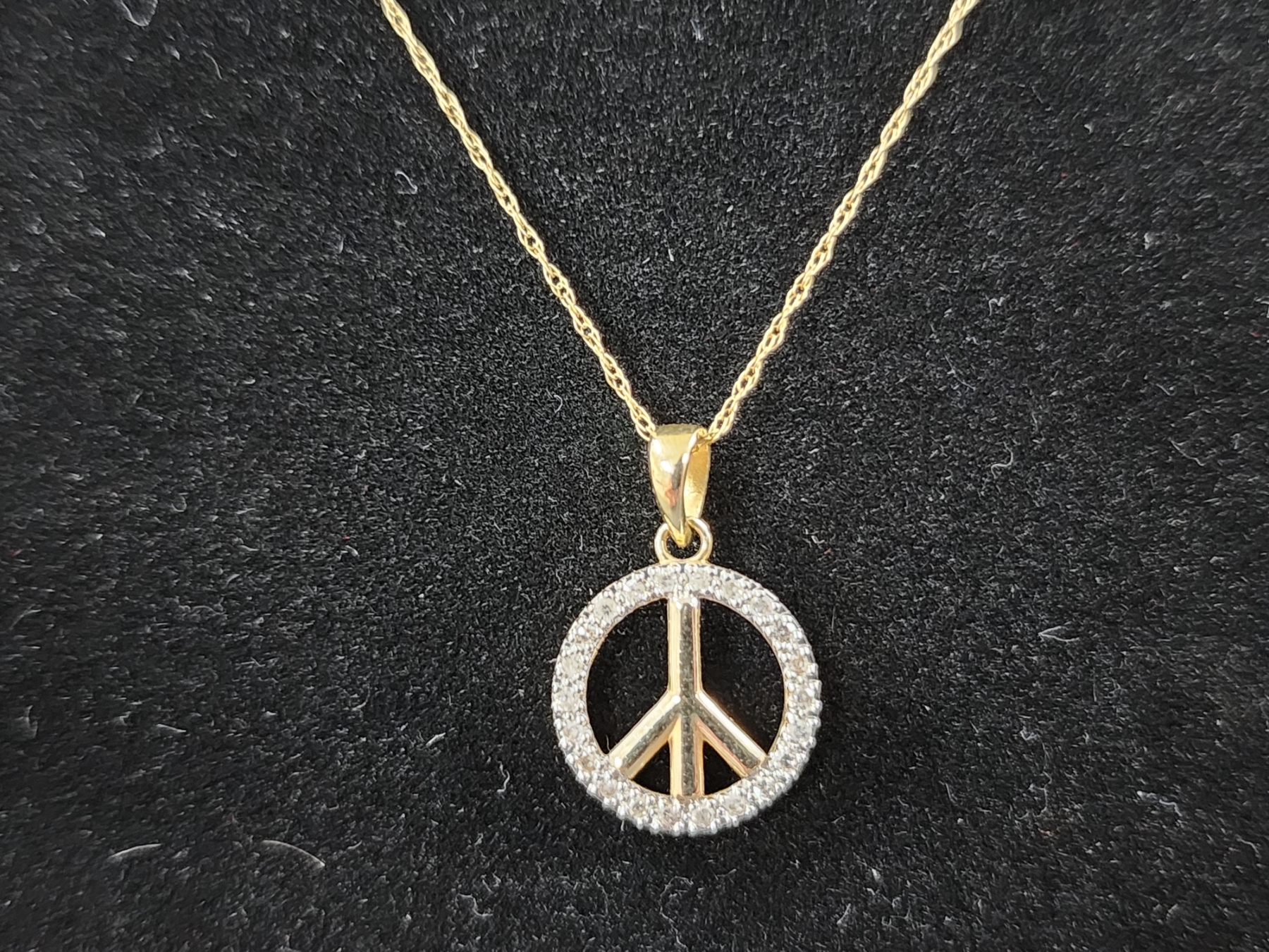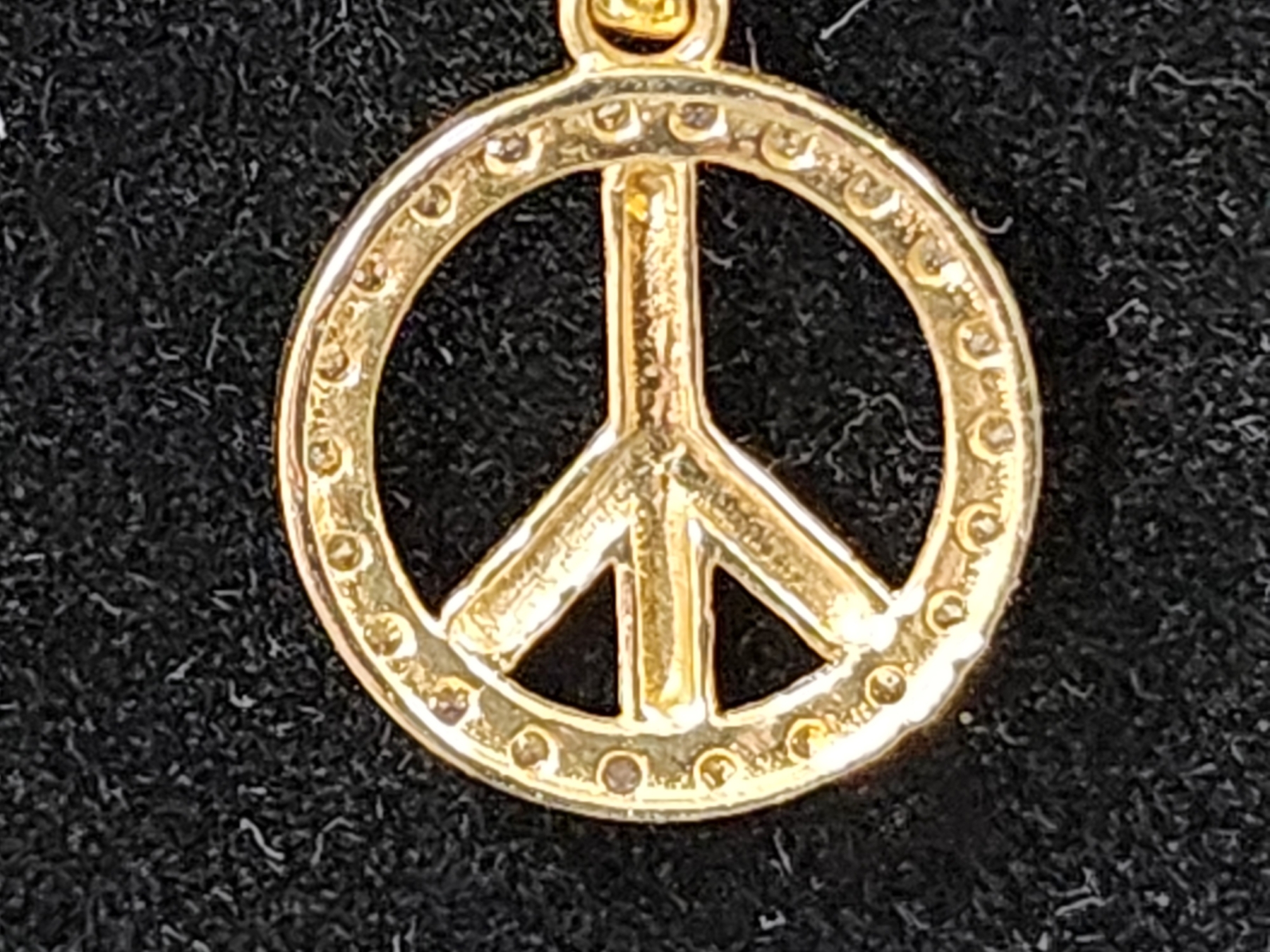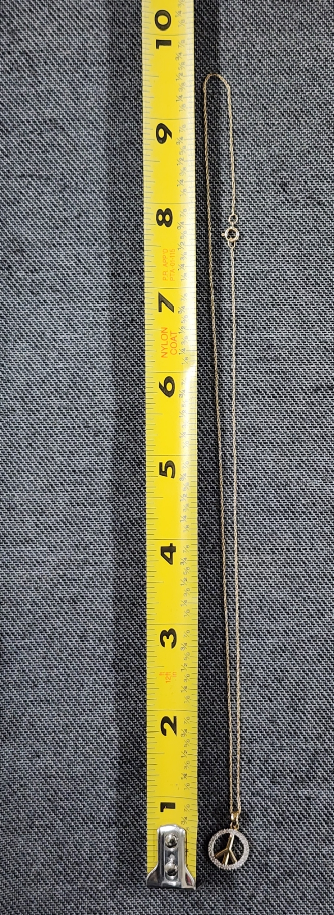 14K Yellow Gold Peace Sign Pendant & Necklace Weighing 1.4 Grams
