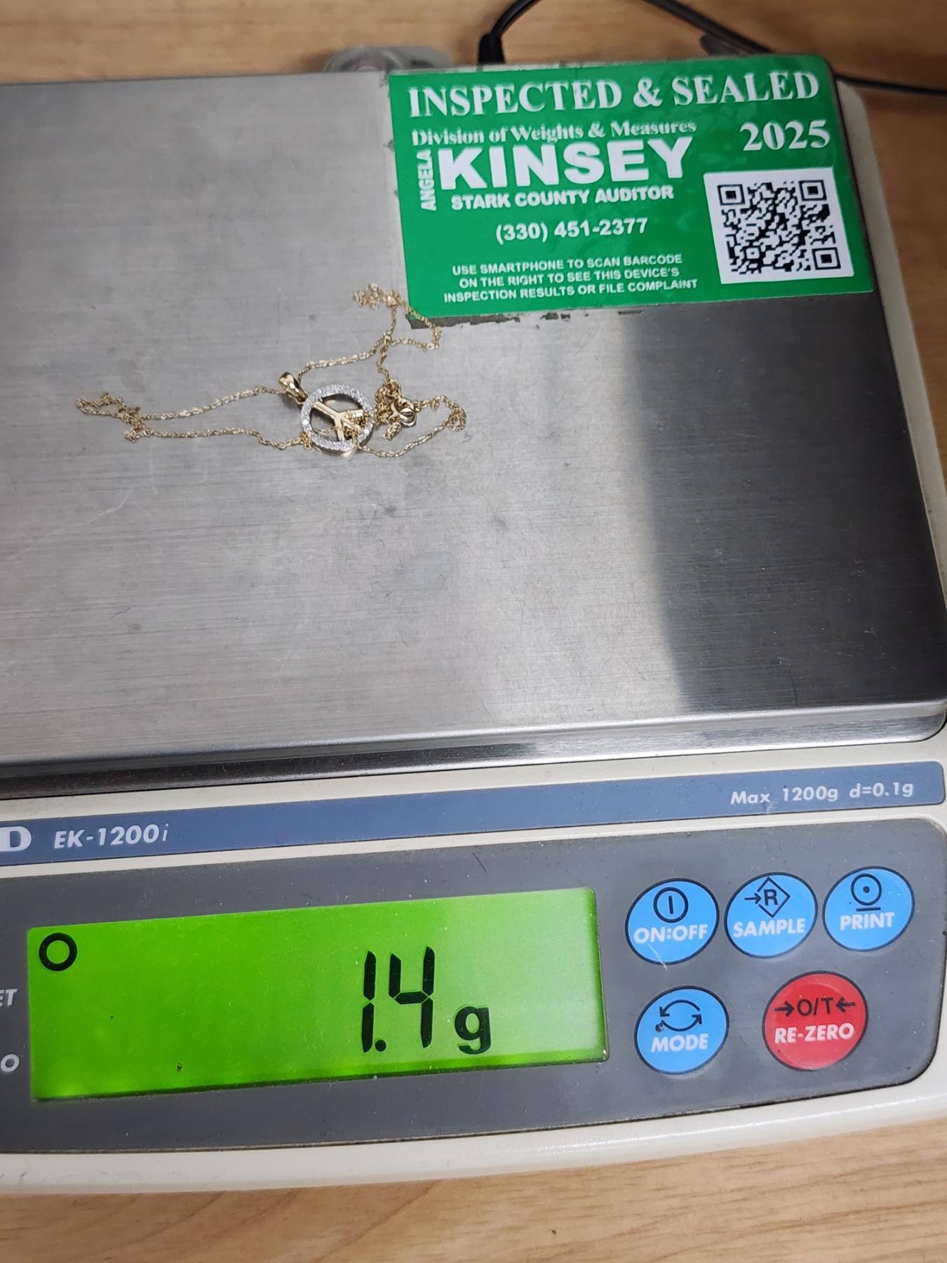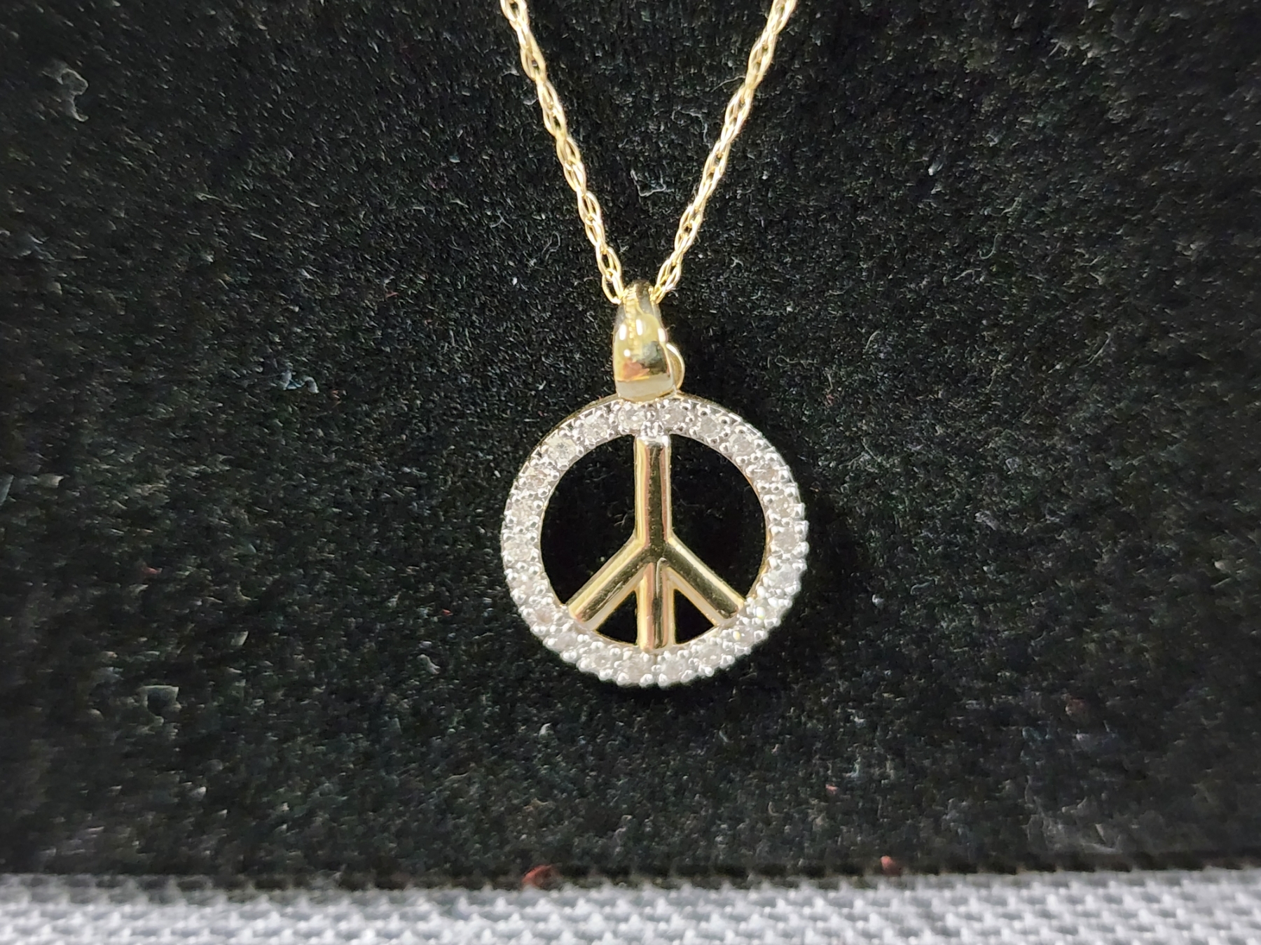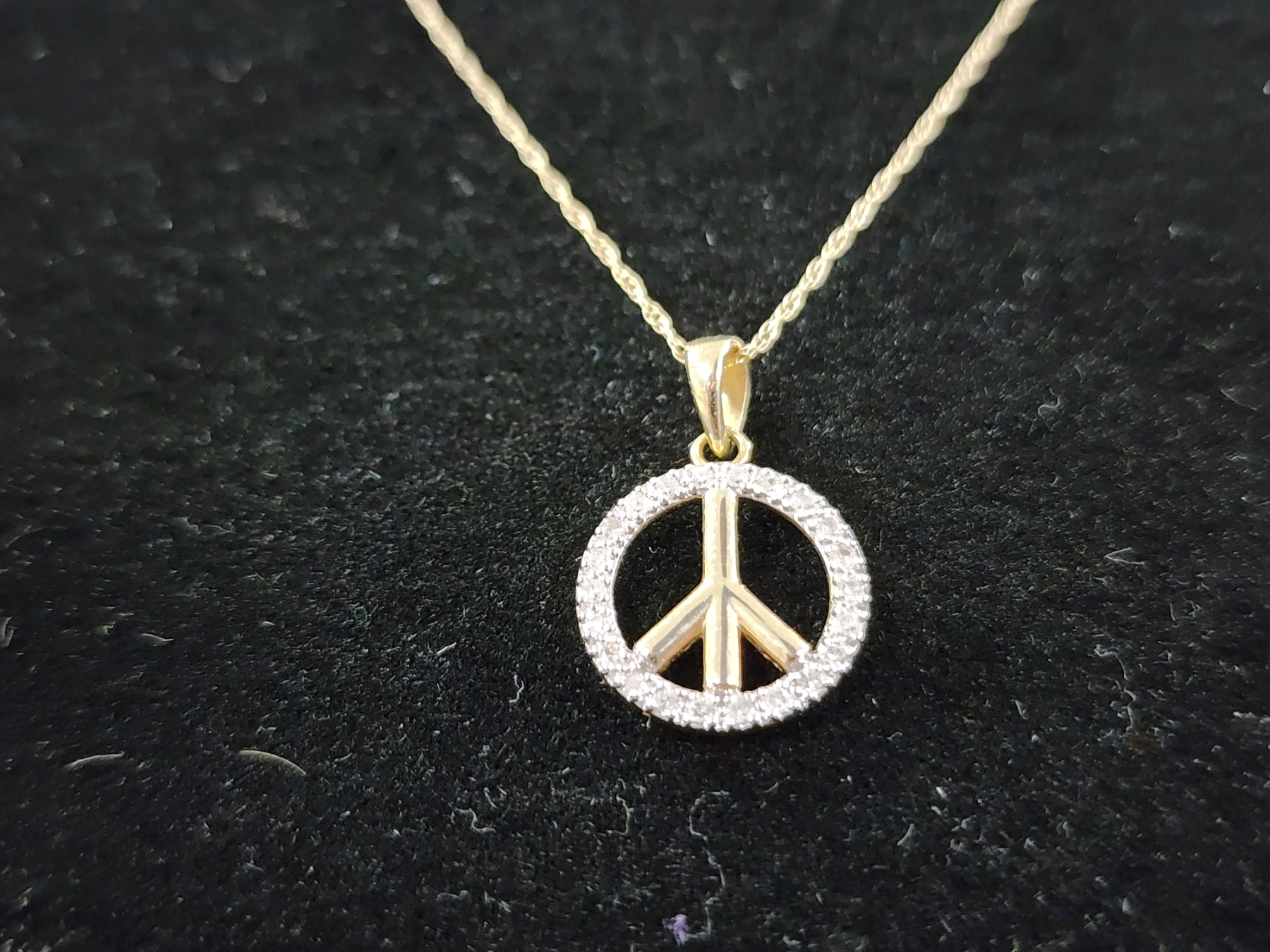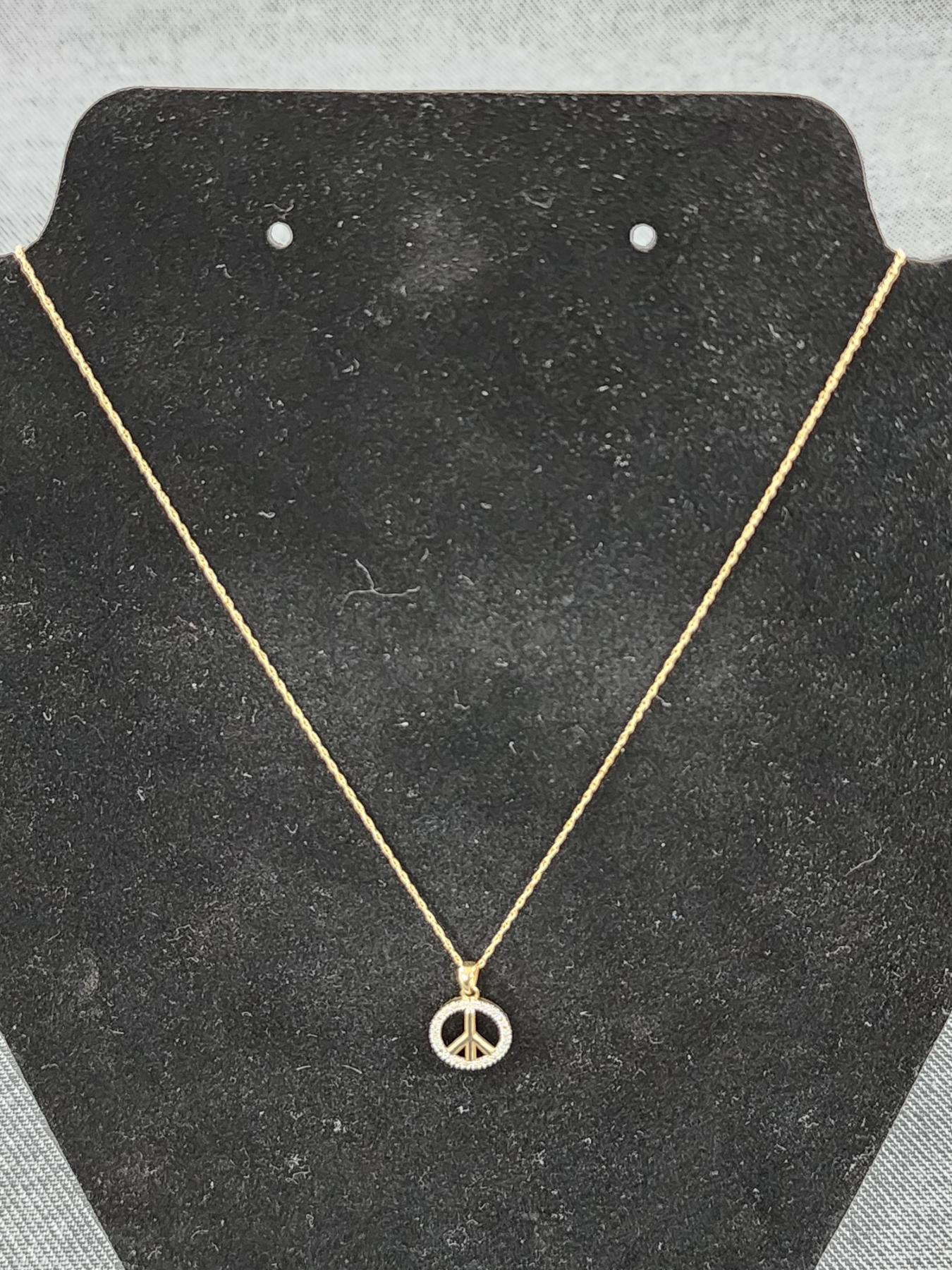 14K Yellow Gold Peace Sign Pendant & Necklace Weighing 1.4 Grams