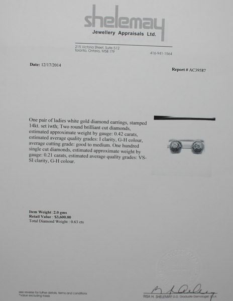 14KT GOLD DIAMOND 0.42CT & 0.21CT EARRINGS