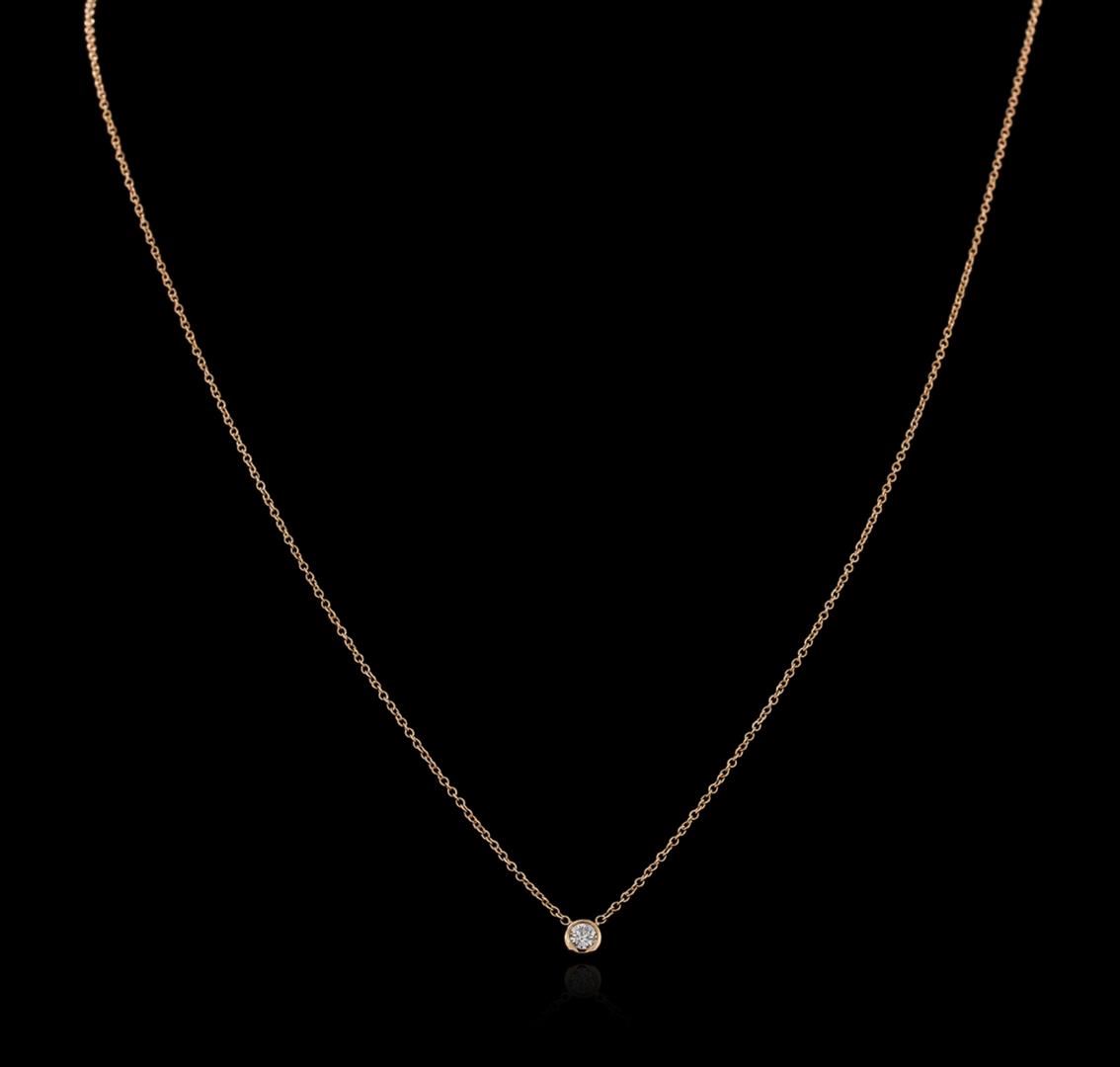 One solitaire necklace featuring: 14KT rose gold weighing 1.68 grams containing one diamond with a total weight of 0.09ct.