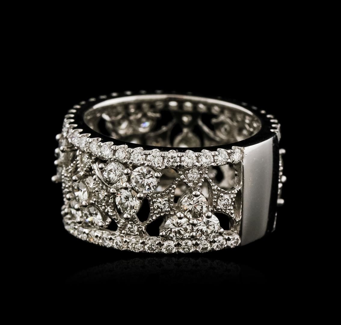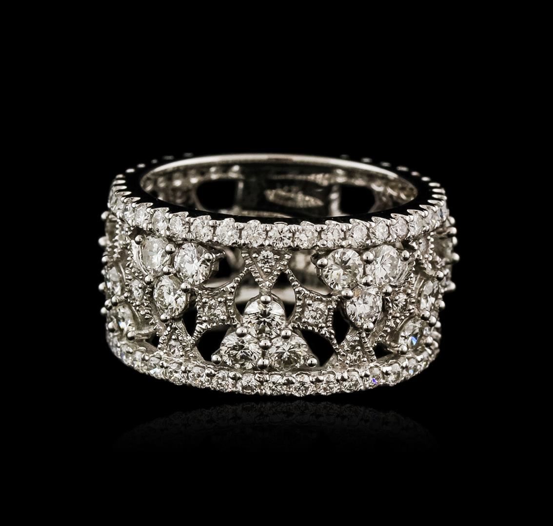 One electronically tested 14KT white gold ladies cast diamond ring with a tapered shank with a bright polish finish. Identified with markings of "14K". Condition is new. Containing: Twenty-Seven prong set round brilliant cut diamonds, measuring 2.70 - 2.70 x 1.62mm (depth est.) approximate total weight of 27 Stones = 1.94ct. Clarity: VS-2 to SI-1. Color: I - J, Cut is Good. One Hundred Three prong set round brilliant cut diamonds, measuring 1.30 - 1.30 x 0.78mm (depth est.) approximate total weight of 103 Stones = 0.82ct. Clarity: SI-1. Color: I - J, Cut is Good. All diamonds are graded in the mounting, unless otherwise stated. Total Weight of Diamonds 2.77ct. Total Weight of Ring 7.10 grams. GGL Appraised at $5,640.00.