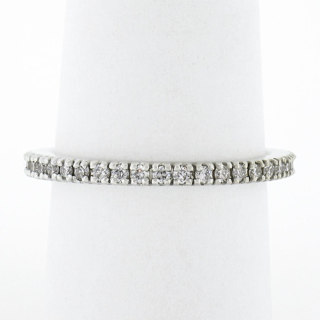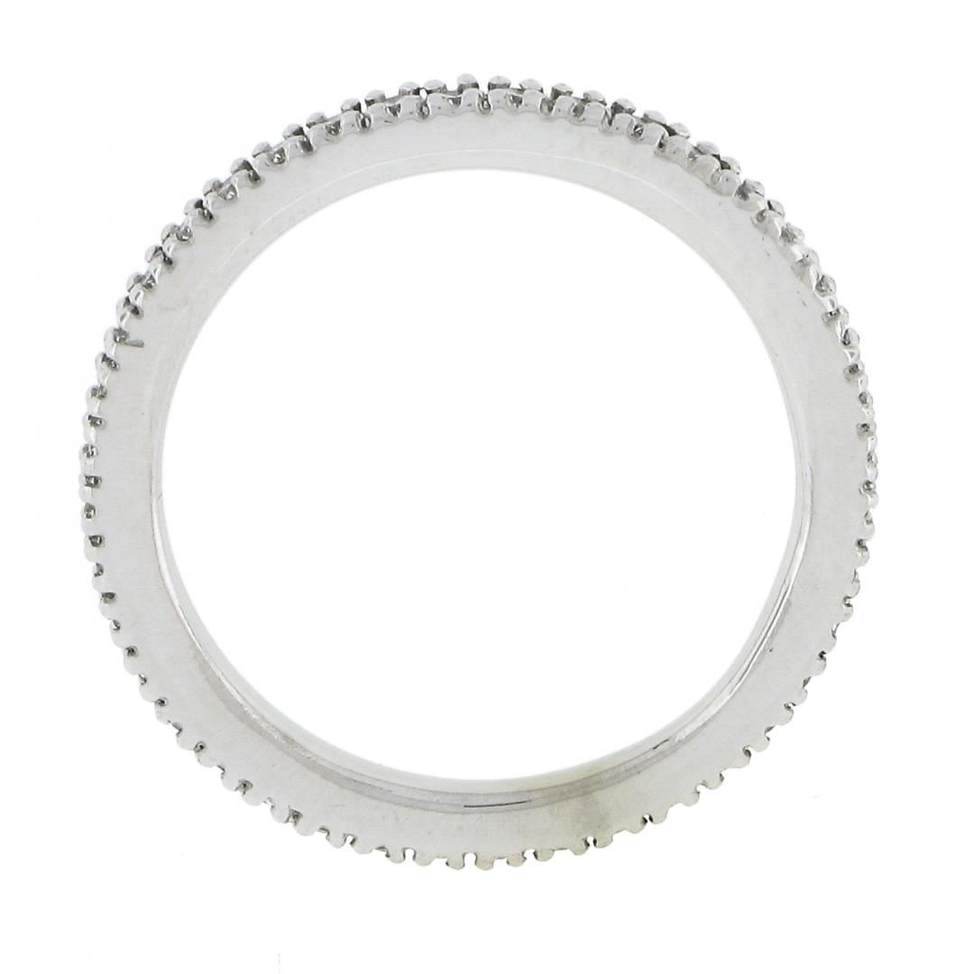 A solid 14k white gold eternity band ring, with 40 round cut natural diamonds (G/H - VS2/SI1 ; 0.55ctw). The ring is size 7.5, weighs a total of 2.70 grams, and measures 2mm wide.