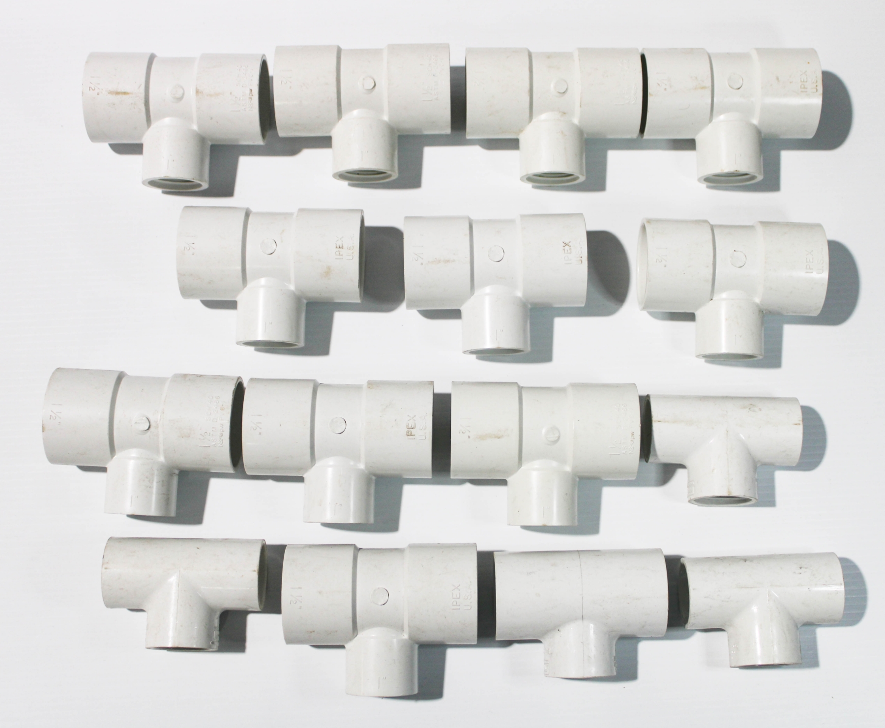 15 NEW IPEX PVC TEE PIPE FITTINGS - 1 1/2  SLIP X 1 1/2  SLIP X 1