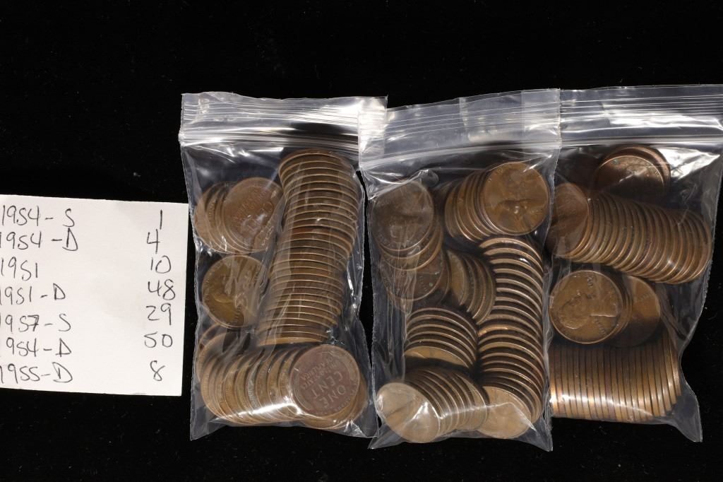 150-LINCOLN WHEAT CENTS: 1954-S, 54-D, 51,51-D,