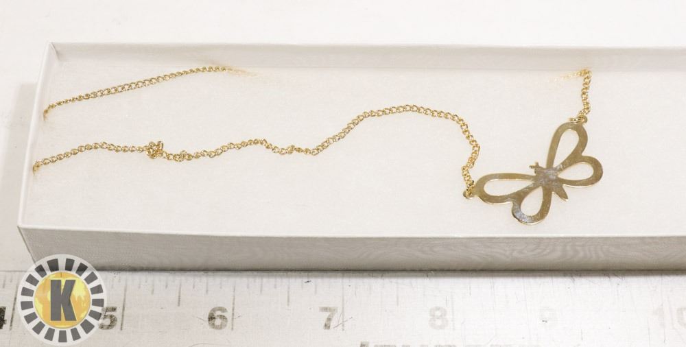 NICE 16'' NECKLACE WITH BUTTERFLY PENDANT. LIKE NEW WITH LITTLE VISIBLE WEAR.***ITEM IS LOCATED IN LETHBRIDGE ALBERTA, PICKUP IS AT OUR LETHBRIDGE LOCATION ONLY, WORLDWIDE SHIPPING IS AVAILABLE***