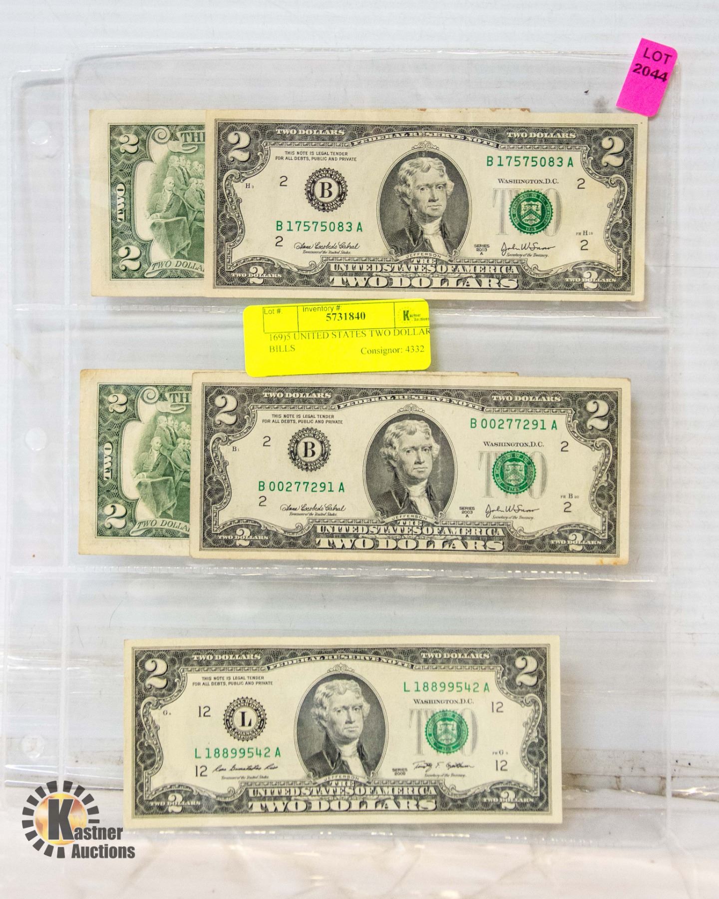 169)5 UNITED STATES TWO DOLLAR BILLS
