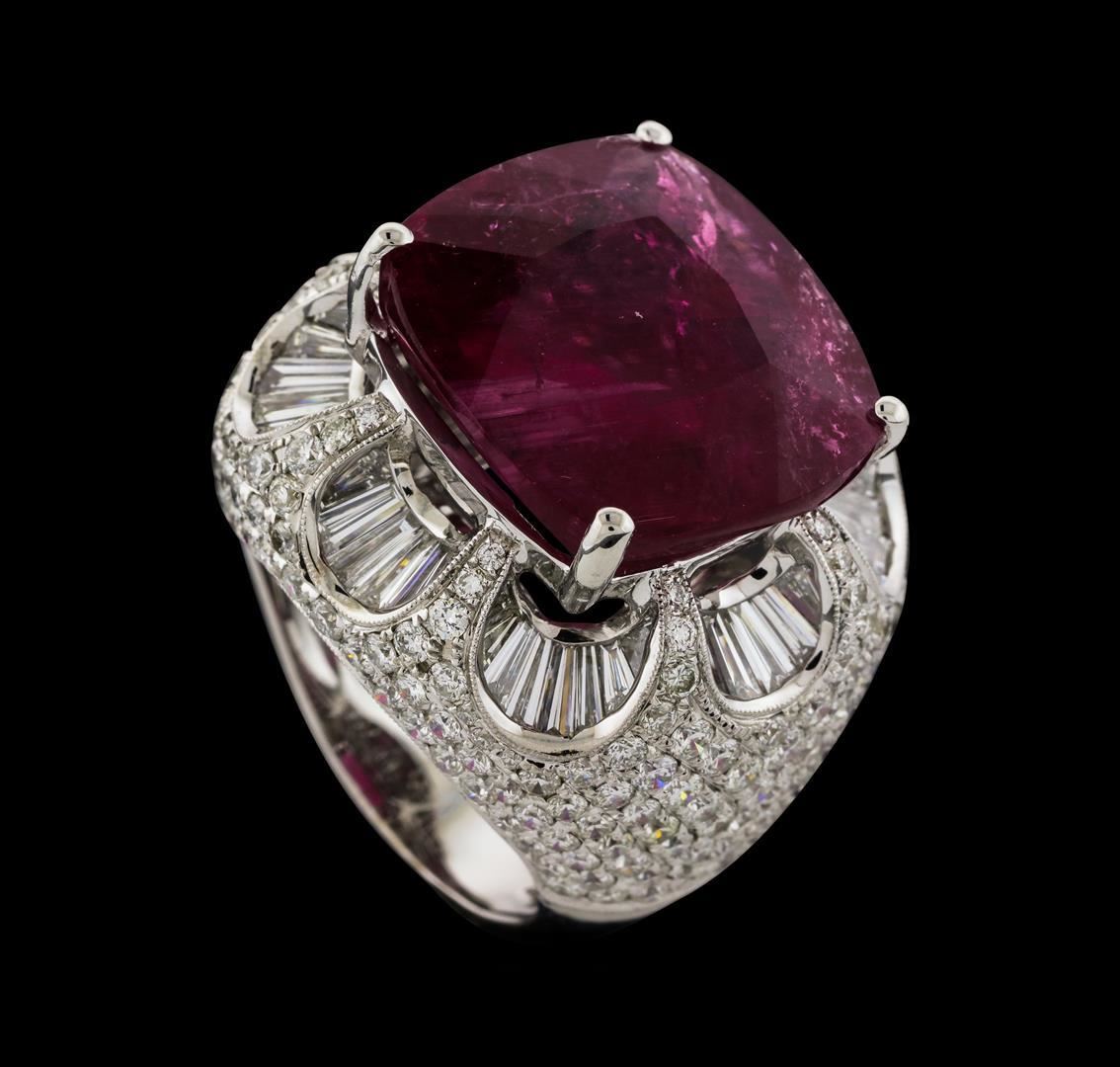 17.68 ctw Pink Tourmaline and Diamond Ring - 18KT White Gold
