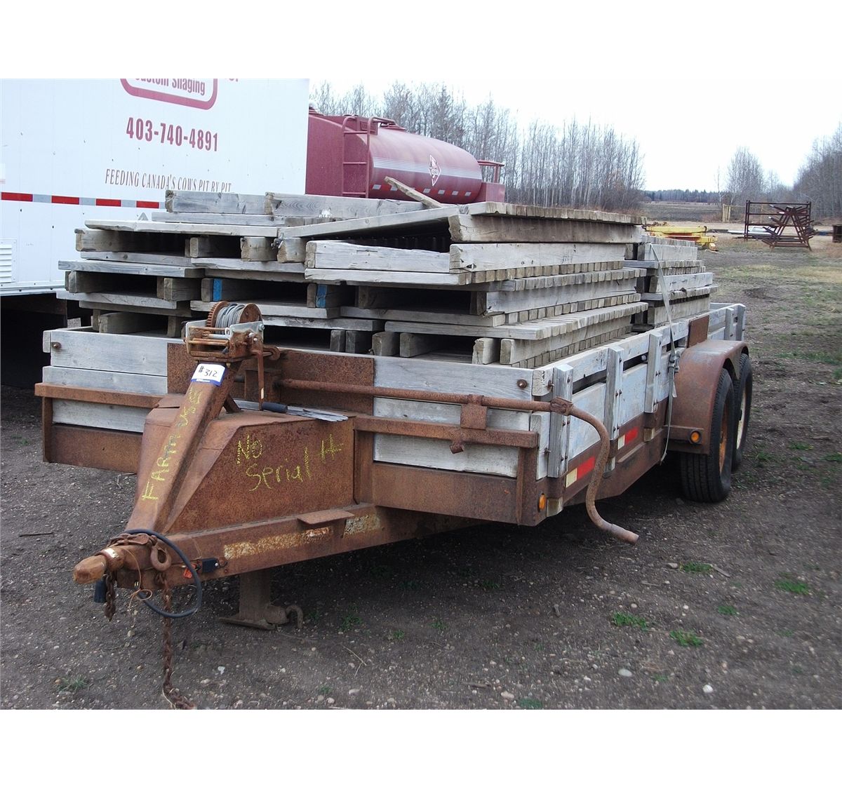complete with spare and hand winch, SN #farm use only, contents of trailer not included