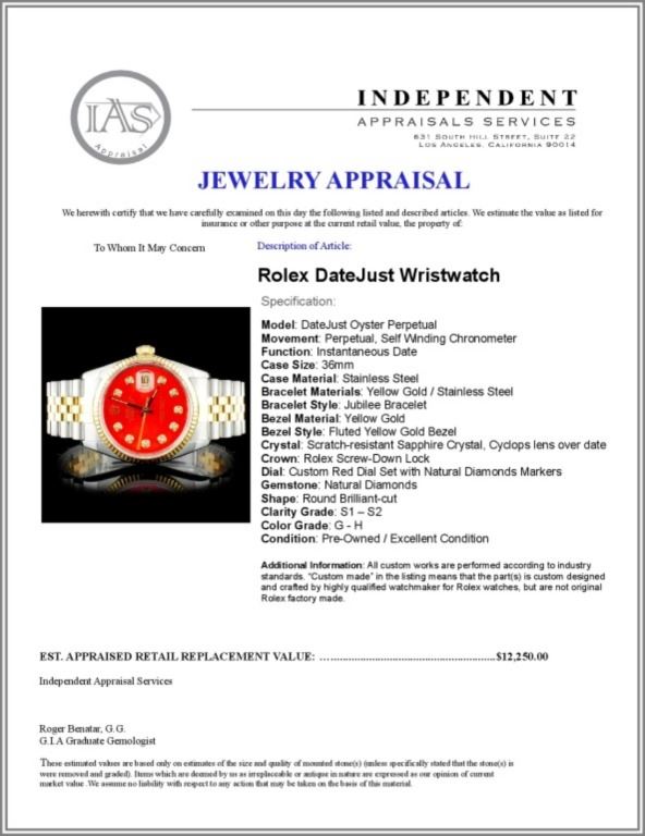 Regarding Appraised Jewelry and Loose Stones - Auctionfarm sends them out to a third party for Retail Replacement Value Appraisals, which are the most common. These types of evaluations are written for insurance needs. This would be the cost to replace the jewelry with an item of equal quality and kind, considered to be the current market price or the replacement value. This type of appraisal is done to protect you in the event of damage or loss of a valuable item. Our appraisals are conducted by independent 3rd Party appraisal firms that utilizes Certified GIA Gemologist. Appraisals should be used for verification of gemstone and/or metal weight, size, and grade only, not actual value. Appraisal value should be considered for insurance purposes only, not actual value, as price varies greatly from retail locations thru out the world. Items should not be purchased with the expectation to resell for appraisal price, or for profit.
