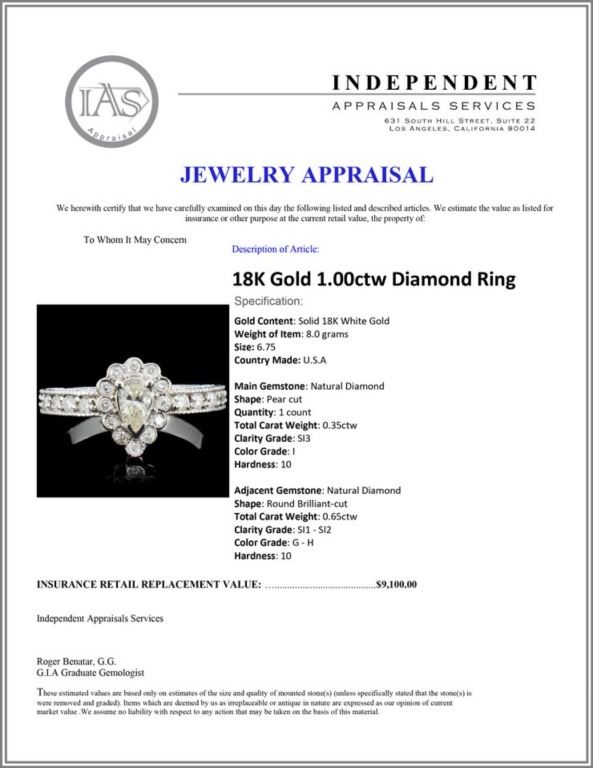 Regarding Appraised Jewelry and Loose Stones - Auctionfarm sends them out to a third party for Retail Replacement Value Appraisals, which are the most common. These types of evaluations are written for insurance needs. This would be the cost to replace the jewelry with an item of equal quality and kind, considered to be the current market price or the replacement value. This type of appraisal is done to protect you in the event of damage or loss of a valuable item. Our appraisals are conducted by independent 3rd Party appraisal firms that utilizes Certified GIA Gemologist. Appraisals should be used for verification of gemstone and/or metal weight, size, and grade only, not actual value. Appraisal value should be considered for insurance purposes only, not actual value, as price varies greatly from retail locations thru out the world. Items should not be purchased with the expectation to resell for appraisal price, or for profit.