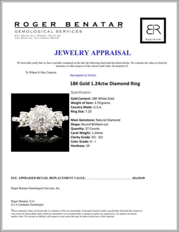 Regarding Appraised Jewelry and Loose Stones - Auctionfarm sends them out to a third party for Retail Replacement Value Appraisals, which are the most common. These types of evaluations are written for insurance needs. This would be the cost to replace the jewelry with an item of equal quality and kind, considered to be the current market price or the replacement value. This type of appraisal is done to protect you in the event of damage or loss of a valuable item. Our appraisals are conducted by independent 3rd Party appraisal firms that utilizes Certified GIA Gemologist. Appraisals should be used for verification of gemstone and/or metal weight, size, and grade only, not actual value. Appraisal value should be considered for insurance purposes only, not actual value, as price varies greatly from retail locations thru out the world. Items should not be purchased with the expectation to resell for appraisal price, or for profit.