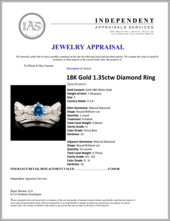 Regarding Appraised Jewelry and Loose Stones - Auctionfarm sends them out to a third party for Retail Replacement Value Appraisals, which are the most common. These types of evaluations are written for insurance needs. This would be the cost to replace the jewelry with an item of equal quality and kind, considered to be the current market price or the replacement value. This type of appraisal is done to protect you in the event of damage or loss of a valuable item. Our appraisals are conducted by independent 3rd Party appraisal firms that utilizes Certified GIA Gemologist. Appraisals should be used for verification of gemstone and/or metal weight, size, and grade only, not actual value. Appraisal value should be considered for insurance purposes only, not actual value, as price varies greatly from retail locations thru out the world. Items should not be purchased with the expectation to resell for appraisal price, or for profit.