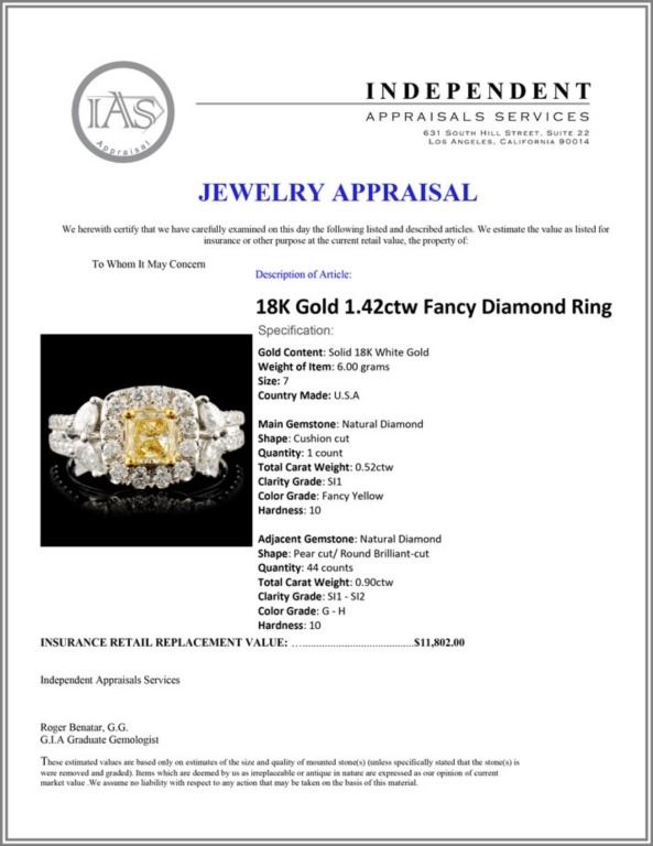 Regarding Appraised Jewelry and Loose Stones - Auctionfarm sends them out to a third party for Retail Replacement Value Appraisals, which are the most common. These types of evaluations are written for insurance needs. This would be the cost to replace the jewelry with an item of equal quality and kind, considered to be the current market price or the replacement value. This type of appraisal is done to protect you in the event of damage or loss of a valuable item. Our appraisals are conducted by independent 3rd Party appraisal firms that utilizes Certified GIA Gemologist. Appraisals should be used for verification of gemstone and/or metal weight, size, and grade only, not actual value. Appraisal value should be considered for insurance purposes only, not actual value, as price varies greatly from retail locations thru out the world. Items should not be purchased with the expectation to resell for appraisal price, or for profit.