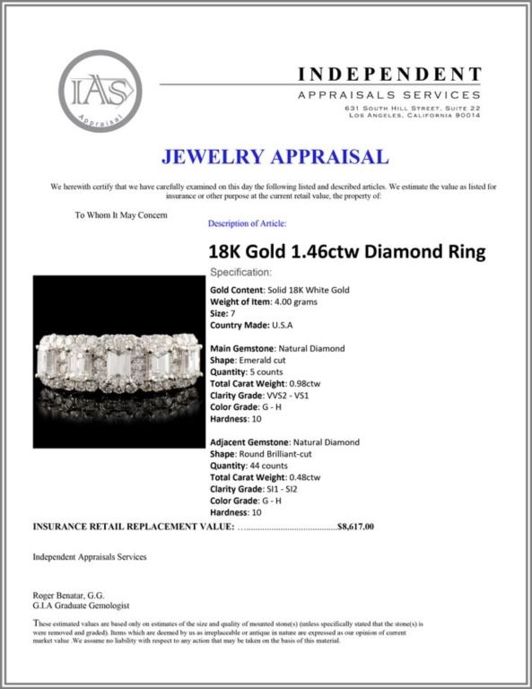 Regarding Appraised Jewelry and Loose Stones - Auctionfarm sends them out to a third party for Retail Replacement Value Appraisals, which are the most common. These types of evaluations are written for insurance needs. This would be the cost to replace the jewelry with an item of equal quality and kind, considered to be the current market price or the replacement value. This type of appraisal is done to protect you in the event of damage or loss of a valuable item. Our appraisals are conducted by independent 3rd Party appraisal firms that utilizes Certified GIA Gemologist. Appraisals should be used for verification of gemstone and/or metal weight, size, and grade only, not actual value. Appraisal value should be considered for insurance purposes only, not actual value, as price varies greatly from retail locations thru out the world. Items should not be purchased with the expectation to resell for appraisal price, or for profit.