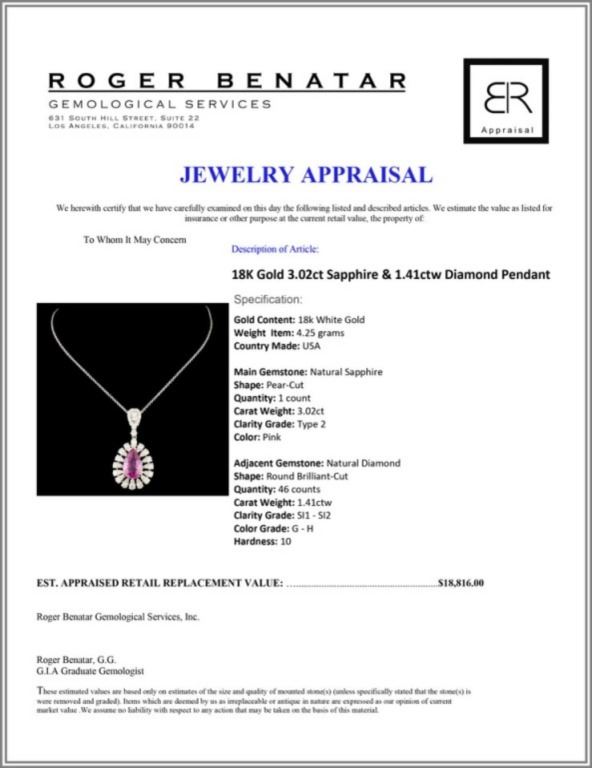 Regarding Appraised Jewelry and Loose Stones - Auctionfarm sends them out to a third party for Retail Replacement Value Appraisals, which are the most common. These types of evaluations are written for insurance needs. This would be the cost to replace the jewelry with an item of equal quality and kind, considered to be the current market price or the replacement value. This type of appraisal is done to protect you in the event of damage or loss of a valuable item. Our appraisals are conducted by independent 3rd Party appraisal firms that utilizes Certified GIA Gemologist. Appraisals should be used for verification of gemstone and/or metal weight, size, and grade only, not actual value. Appraisal value should be considered for insurance purposes only, not actual value, as price varies greatly from retail locations thru out the world. Items should not be purchased with the expectation to resell for appraisal price, or for profit.