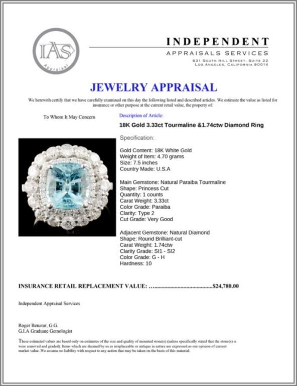 Regarding Appraised Jewelry and Loose Stones - Auctionfarm sends them out to a third party for Retail Replacement Value Appraisals, which are the most common. These types of evaluations are written for insurance needs. This would be the cost to replace the jewelry with an item of equal quality and kind, considered to be the current market price or the replacement value. This type of appraisal is done to protect you in the event of damage or loss of a valuable item. Our appraisals are conducted by independent 3rd Party appraisal firms that utilizes Certified GIA Gemologist. Appraisals should be used for verification of gemstone and/or metal weight, size, and grade only, not actual value. Appraisal value should be considered for insurance purposes only, not actual value, as price varies greatly from retail locations thru out the world. Items should not be purchased with the expectation to resell for appraisal price, or for profit.