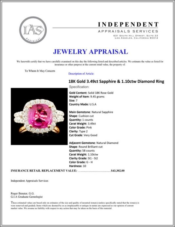 Regarding Appraised Jewelry and Loose Stones - Auctionfarm sends them out to a third party for Retail Replacement Value Appraisals, which are the most common. These types of evaluations are written for insurance needs. This would be the cost to replace the jewelry with an item of equal quality and kind, considered to be the current market price or the replacement value. This type of appraisal is done to protect you in the event of damage or loss of a valuable item. Our appraisals are conducted by independent 3rd Party appraisal firms that utilizes Certified GIA Gemologist. Appraisals should be used for verification of gemstone and/or metal weight, size, and grade only, not actual value. Appraisal value should be considered for insurance purposes only, not actual value, as price varies greatly from retail locations thru out the world. Items should not be purchased with the expectation to resell for appraisal price, or for profit.