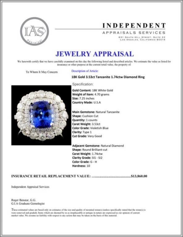 Regarding Appraised Jewelry and Loose Stones - Auctionfarm sends them out to a third party for Retail Replacement Value Appraisals, which are the most common. These types of evaluations are written for insurance needs. This would be the cost to replace the jewelry with an item of equal quality and kind, considered to be the current market price or the replacement value. This type of appraisal is done to protect you in the event of damage or loss of a valuable item. Our appraisals are conducted by independent 3rd Party appraisal firms that utilizes Certified GIA Gemologist. Appraisals should be used for verification of gemstone and/or metal weight, size, and grade only, not actual value. Appraisal value should be considered for insurance purposes only, not actual value, as price varies greatly from retail locations thru out the world. Items should not be purchased with the expectation to resell for appraisal price, or for profit.