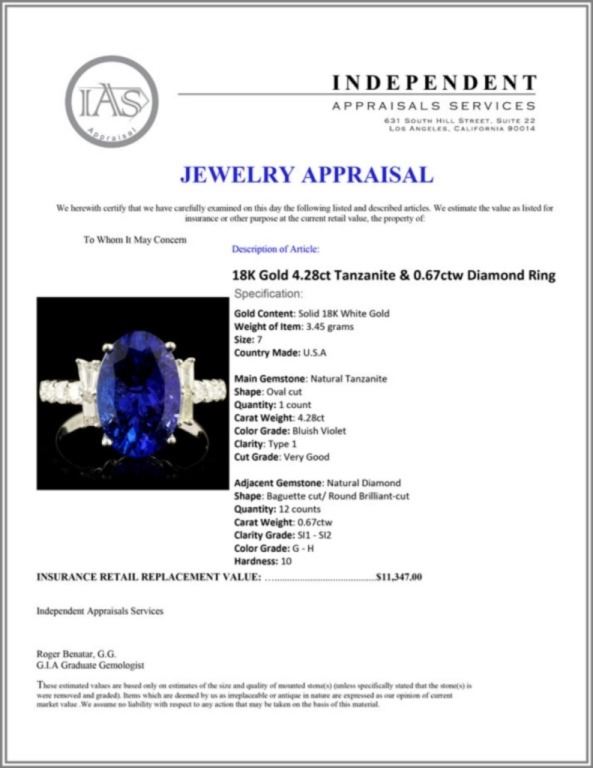 Regarding Appraised Jewelry and Loose Stones - Auctionfarm sends them out to a third party for Retail Replacement Value Appraisals, which are the most common. These types of evaluations are written for insurance needs. This would be the cost to replace the jewelry with an item of equal quality and kind, considered to be the current market price or the replacement value. This type of appraisal is done to protect you in the event of damage or loss of a valuable item. Our appraisals are conducted by independent 3rd Party appraisal firms that utilizes Certified GIA Gemologist. Appraisals should be used for verification of gemstone and/or metal weight, size, and grade only, not actual value. Appraisal value should be considered for insurance purposes only, not actual value, as price varies greatly from retail locations thru out the world. Items should not be purchased with the expectation to resell for appraisal price, or for profit.