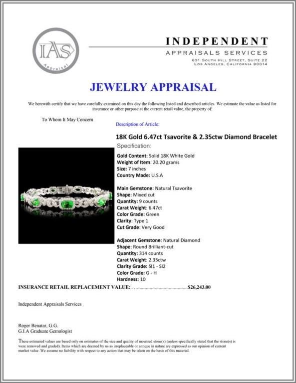 Regarding Appraised Jewelry and Loose Stones - Auctionfarm sends them out to a third party for Retail Replacement Value Appraisals, which are the most common. These types of evaluations are written for insurance needs. This would be the cost to replace the jewelry with an item of equal quality and kind, considered to be the current market price or the replacement value. This type of appraisal is done to protect you in the event of damage or loss of a valuable item. Our appraisals are conducted by independent 3rd Party appraisal firms that utilizes Certified GIA Gemologist. Appraisals should be used for verification of gemstone and/or metal weight, size, and grade only, not actual value. Appraisal value should be considered for insurance purposes only, not actual value, as price varies greatly from retail locations thru out the world. Items should not be purchased with the expectation to resell for appraisal price, or for profit.