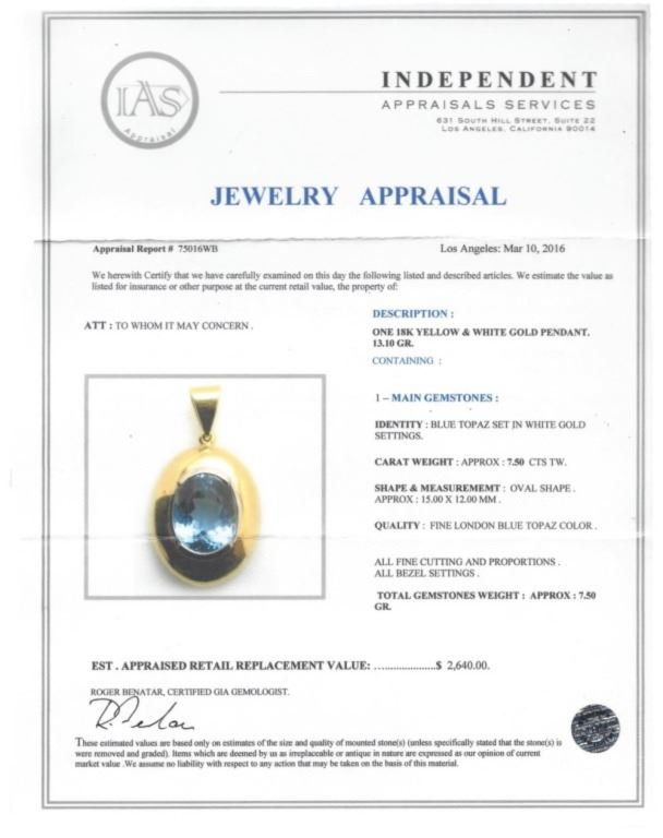 Regarding Appraised Jewelry and Loose Stones - Auctionfarm sends them out to a third party for Retail Replacement Value Appraisals, which are the most common. These types of evaluations are written for insurance needs. This would be the cost to replace the jewelry with an item of equal quality and kind, considered to be the current market price or the replacement value. This type of appraisal is done to protect you in the event of damage or loss of a valuable item. Our appraisals are conducted by independent 3rd Party appraisal firms that utilizes Certified GIA Gemologist. Appraisals should be used for verification of gemstone and/or metal weight, size, and grade only, not actual value. Appraisal value should be considered for insurance purposes only, not actual value, as price varies greatly from retail locations thru out the world. Items should not be purchased with the expectation to resell for appraisal price, or for profit.