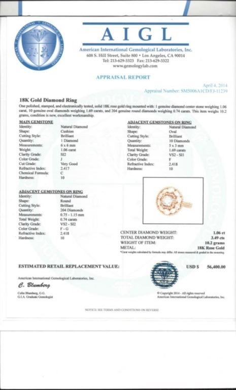 Regarding Appraised Jewelry and Loose Stones - Auctionfarm sends them out to a third party for Retail Replacement Value Appraisals, which are the most common. These types of evaluations are written for insurance needs. This would be the cost to replace the jewelry with an item of equal quality and kind, considered to be the current market price or the replacement value. This type of appraisal is done to protect you in the event of damage or loss of a valuable item. Our appraisals are conducted by independent 3rd Party appraisal firms that utilizes Certified GIA Gemologist. Appraisals should be used for verification of gemstone and/or metal weight, size, and grade only, not actual value. Appraisal value should be considered for insurance purposes only, not actual value, as price varies greatly from retail locations thru out the world. Items should not be purchased with the expectation to resell for appraisal price, or for profit.