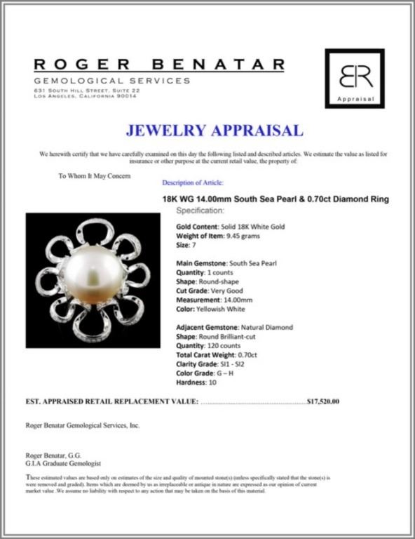 Regarding Appraised Jewelry and Loose Stones - Auctionfarm sends them out to a third party for Retail Replacement Value Appraisals, which are the most common. These types of evaluations are written for insurance needs. This would be the cost to replace the jewelry with an item of equal quality and kind, considered to be the current market price or the replacement value. This type of appraisal is done to protect you in the event of damage or loss of a valuable item. Our appraisals are conducted by independent 3rd Party appraisal firms that utilizes Certified GIA Gemologist. Appraisals should be used for verification of gemstone and/or metal weight, size, and grade only, not actual value. Appraisal value should be considered for insurance purposes only, not actual value, as price varies greatly from retail locations thru out the world. Items should not be purchased with the expectation to resell for appraisal price, or for profit.