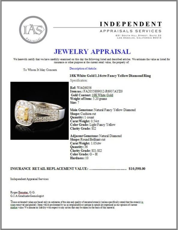 Regarding Appraised Jewelry and Loose Stones - Auctionfarm sends them out to a third party for Retail Replacement Value Appraisals, which are the most common. These types of evaluations are written for insurance needs. This would be the cost to replace the jewelry with an item of equal quality and kind, considered to be the current market price or the replacement value. This type of appraisal is done to protect you in the event of damage or loss of a valuable item. Our appraisals are conducted by independent 3rd Party appraisal firms that utilizes Certified GIA Gemologist. Appraisals should be used for verification of gemstone and/or metal weight, size, and grade only, not actual value. Appraisal value should be considered for insurance purposes only, not actual value, as price varies greatly from retail locations thru out the world. Items should not be purchased with the expectation to resell for appraisal price, or for profit.