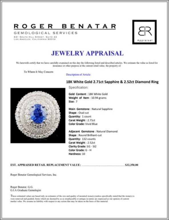 Regarding Appraised Jewelry and Loose Stones - Auctionfarm sends them out to a third party for Retail Replacement Value Appraisals, which are the most common. These types of evaluations are written for insurance needs. This would be the cost to replace the jewelry with an item of equal quality and kind, considered to be the current market price or the replacement value. This type of appraisal is done to protect you in the event of damage or loss of a valuable item. Our appraisals are conducted by independent 3rd Party appraisal firms that utilizes Certified GIA Gemologist. Appraisals should be used for verification of gemstone and/or metal weight, size, and grade only, not actual value. Appraisal value should be considered for insurance purposes only, not actual value, as price varies greatly from retail locations thru out the world. Items should not be purchased with the expectation to resell for appraisal price, or for profit.