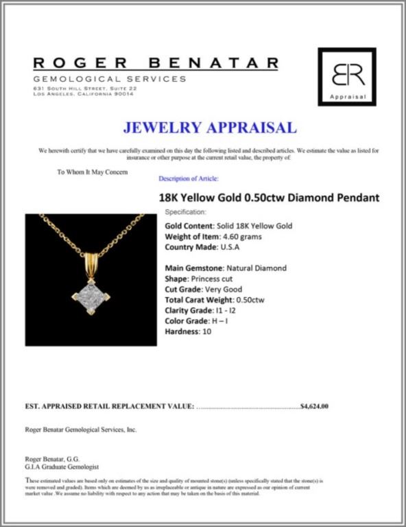 Regarding Appraised Jewelry and Loose Stones - Auctionfarm sends them out to a third party for Retail Replacement Value Appraisals, which are the most common. These types of evaluations are written for insurance needs. This would be the cost to replace the jewelry with an item of equal quality and kind, considered to be the current market price or the replacement value. This type of appraisal is done to protect you in the event of damage or loss of a valuable item. Our appraisals are conducted by independent 3rd Party appraisal firms that utilizes Certified GIA Gemologist. Appraisals should be used for verification of gemstone and/or metal weight, size, and grade only, not actual value. Appraisal value should be considered for insurance purposes only, not actual value, as price varies greatly from retail locations thru out the world. Items should not be purchased with the expectation to resell for appraisal price, or for profit.