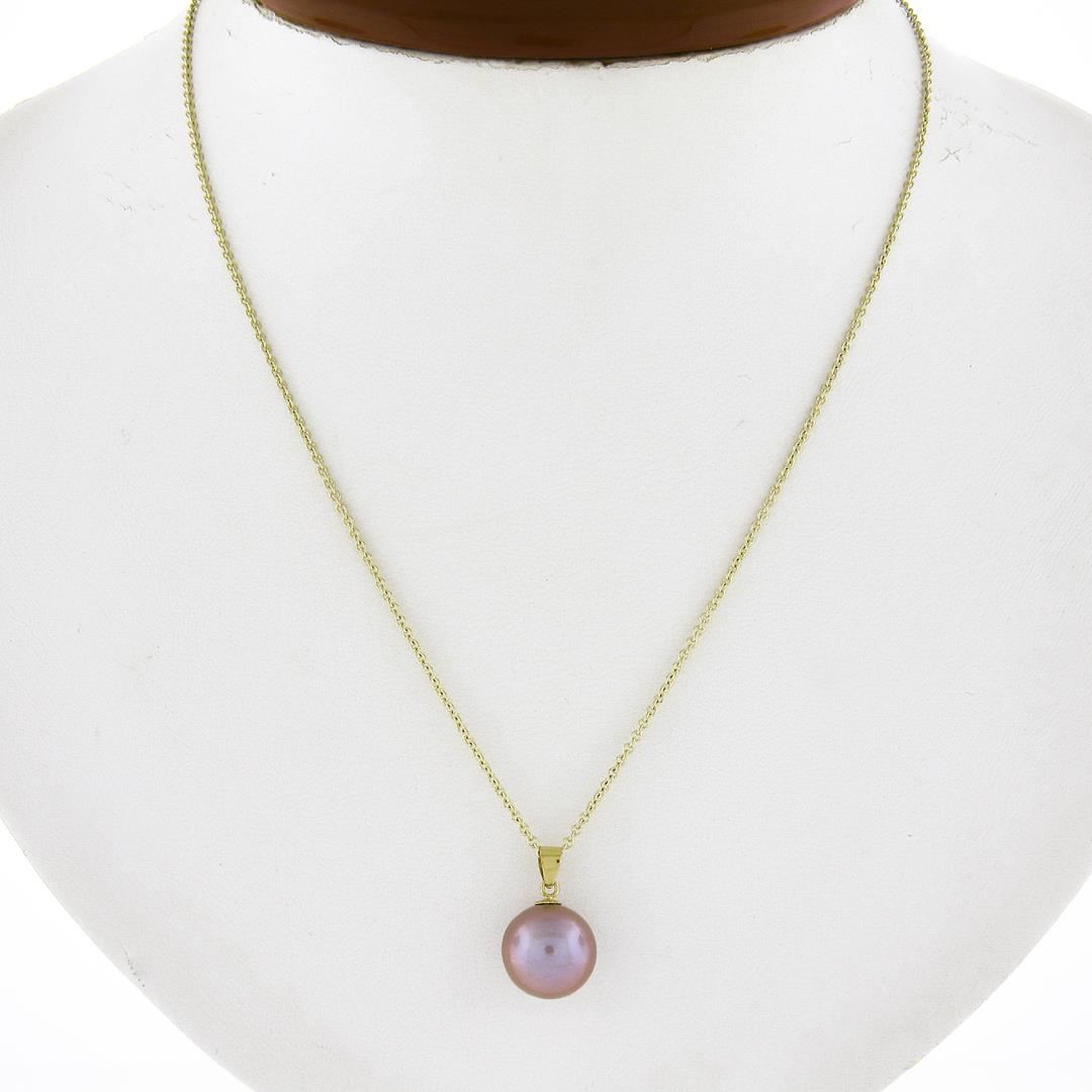 18K Yellow Gold 10.3mm Pink Pearl Solitaire Pendant 18" Cable Chain Necklace