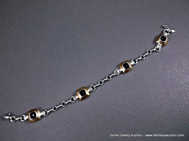 18K Yellow Gold on Sterling Silver Bracelet w/ Black Onyx Stones-Marked CS Weight: 27.4 Grams Retail