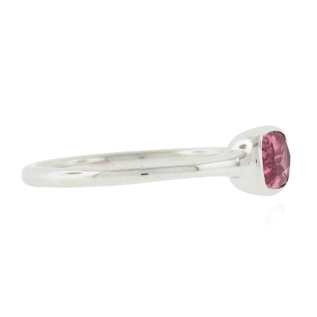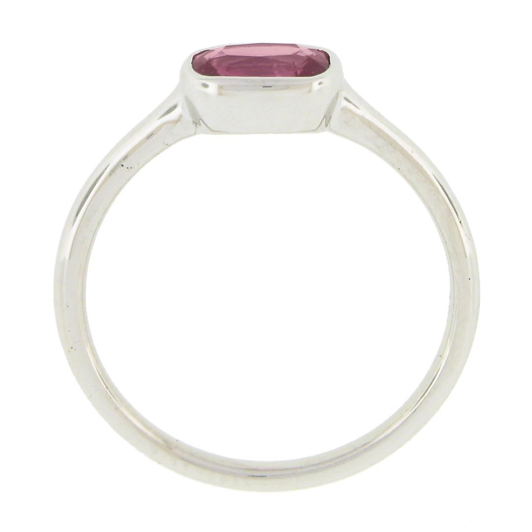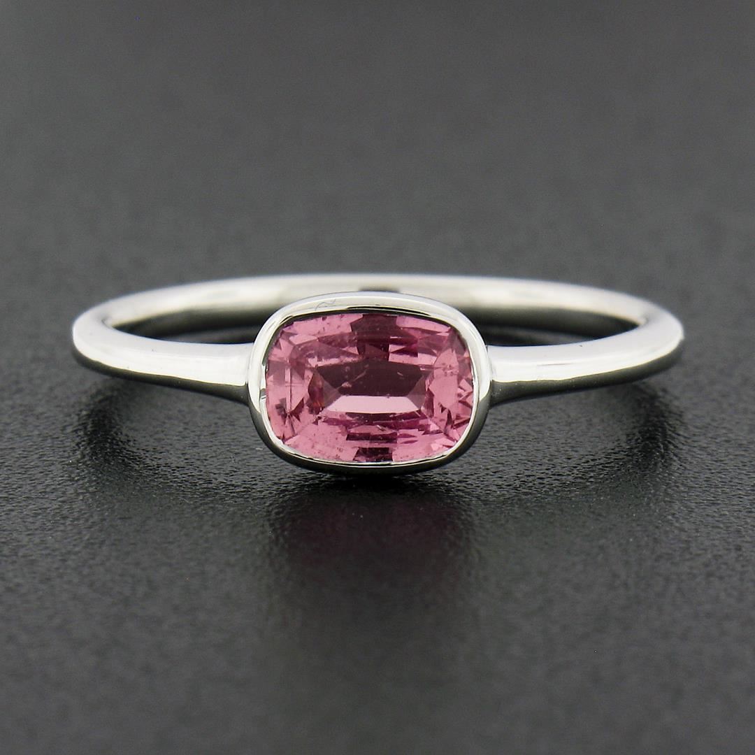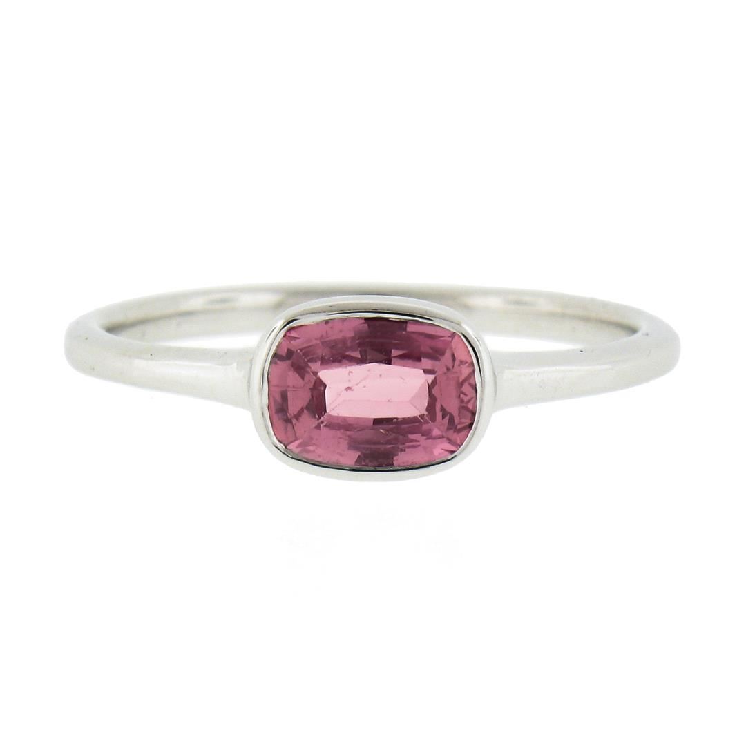 A new solid 18k white gold solitaire ring, with 1 GIA graded cushion cut natural sapphire (0.81ct). The ring is size 6.5, weighs a total of 2.37 grams, and measures 5.7mm wide. Comes with all original relevant certifications.
