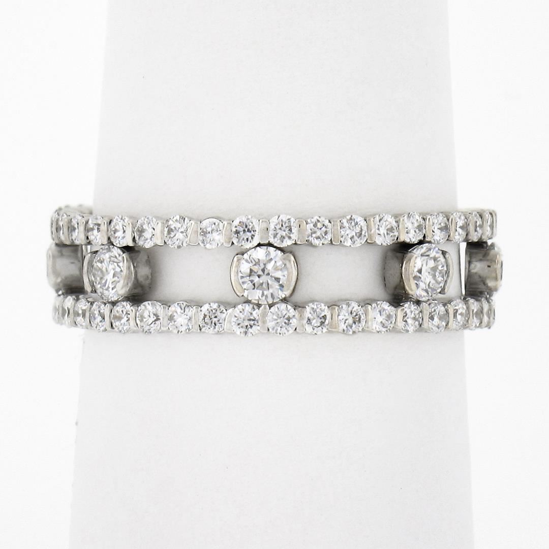 A solid 18k white gold eternity band ring. with 88 round brilliant cut natrual diamonds (F/G - VS1/VS2 ; 1.44ctw). The ring is size 6.5, weighs a total of 2.75 grams, and measures 5.5mm wide.