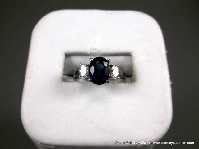 18kWG Sapphire & Diamond 3 Stone Ring 2.22ct. Sapphire, Marked Haleh, size 7 Weight: 4.1 Grams Retai