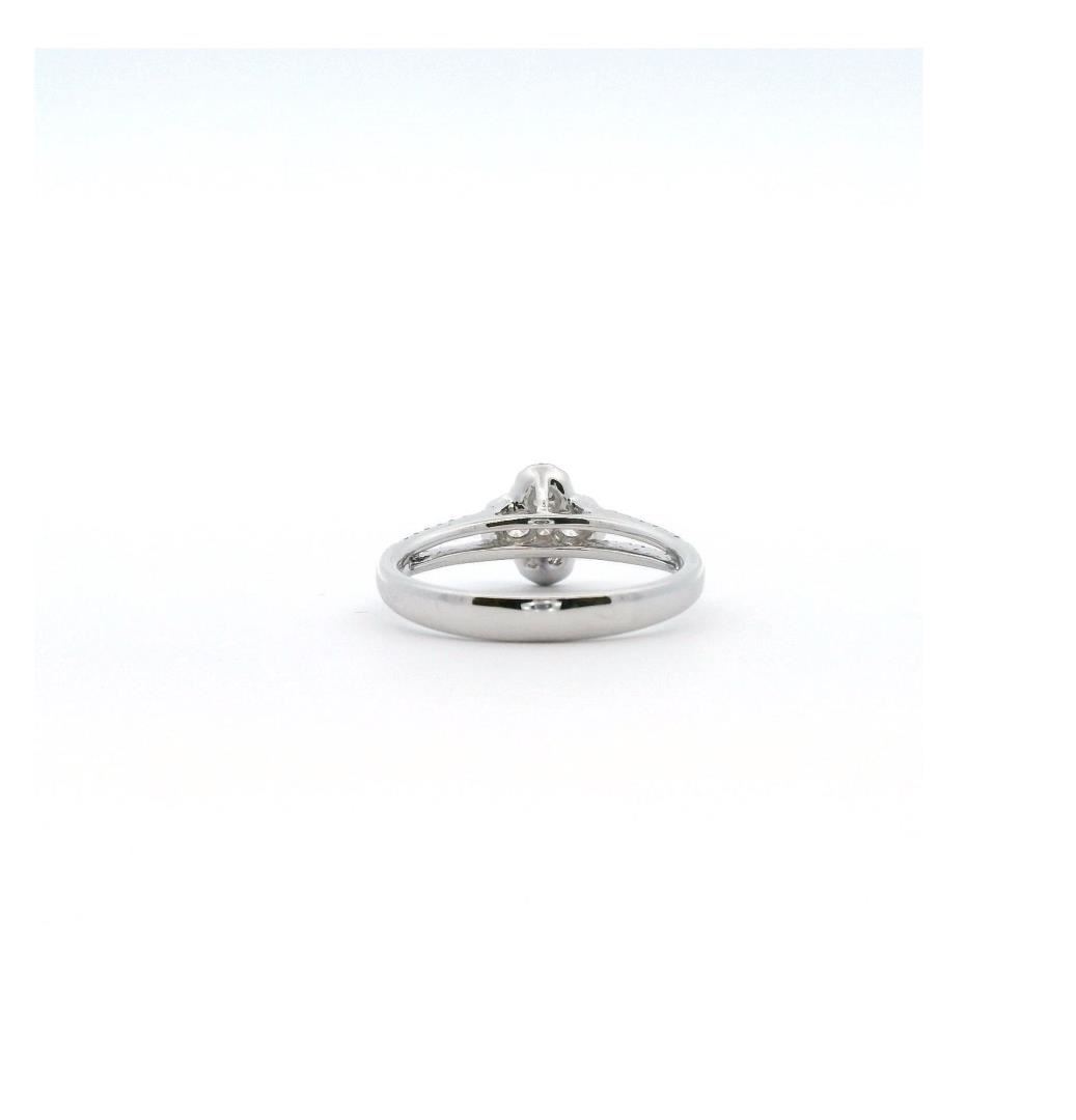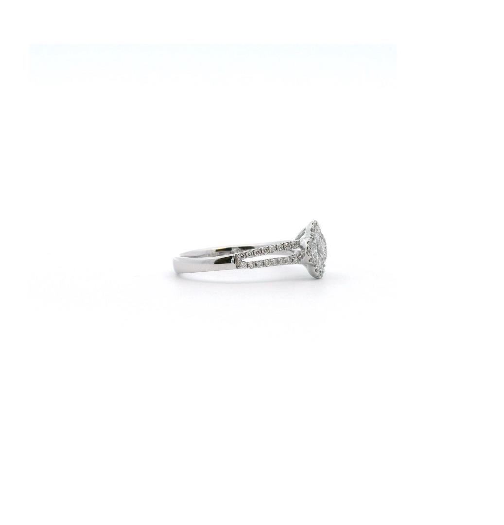 Crafted in 18kt white gold, this fashion ring features an Alhambra motif with a bright polish finish and a shank measuring 2.75mm in width. The design is adorned with four prong-set round brilliant-cut diamonds, totaling 0.23ct, and 57 prong-set round brilliant-cut diamonds, totaling 0.22ct, all graded G-H in color, VS-2 to SI-1 in clarity, and Very Good cut. The intricate detailing and elegant structure create a refined and timeless look.