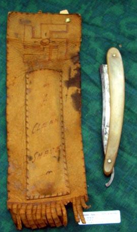 1900's Hand Made Native American Leather Razor Pouch With Wade And Butcher Razor