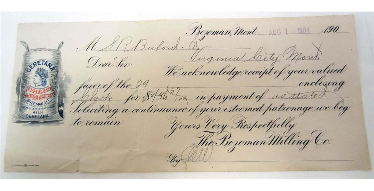 1904 BILLHEAD RECEIPT BOZEMAN MONTANA MILLING CO