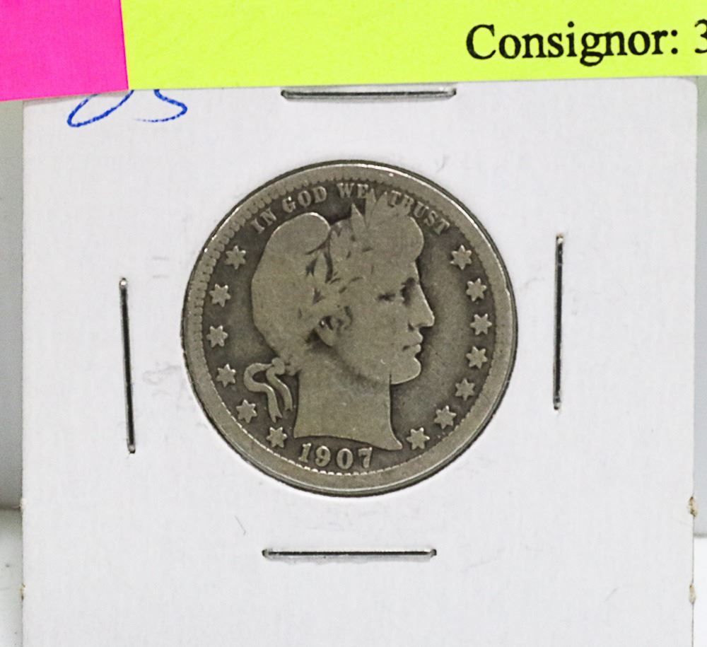 1907 US SILVER BARBER 25 CENT COIN