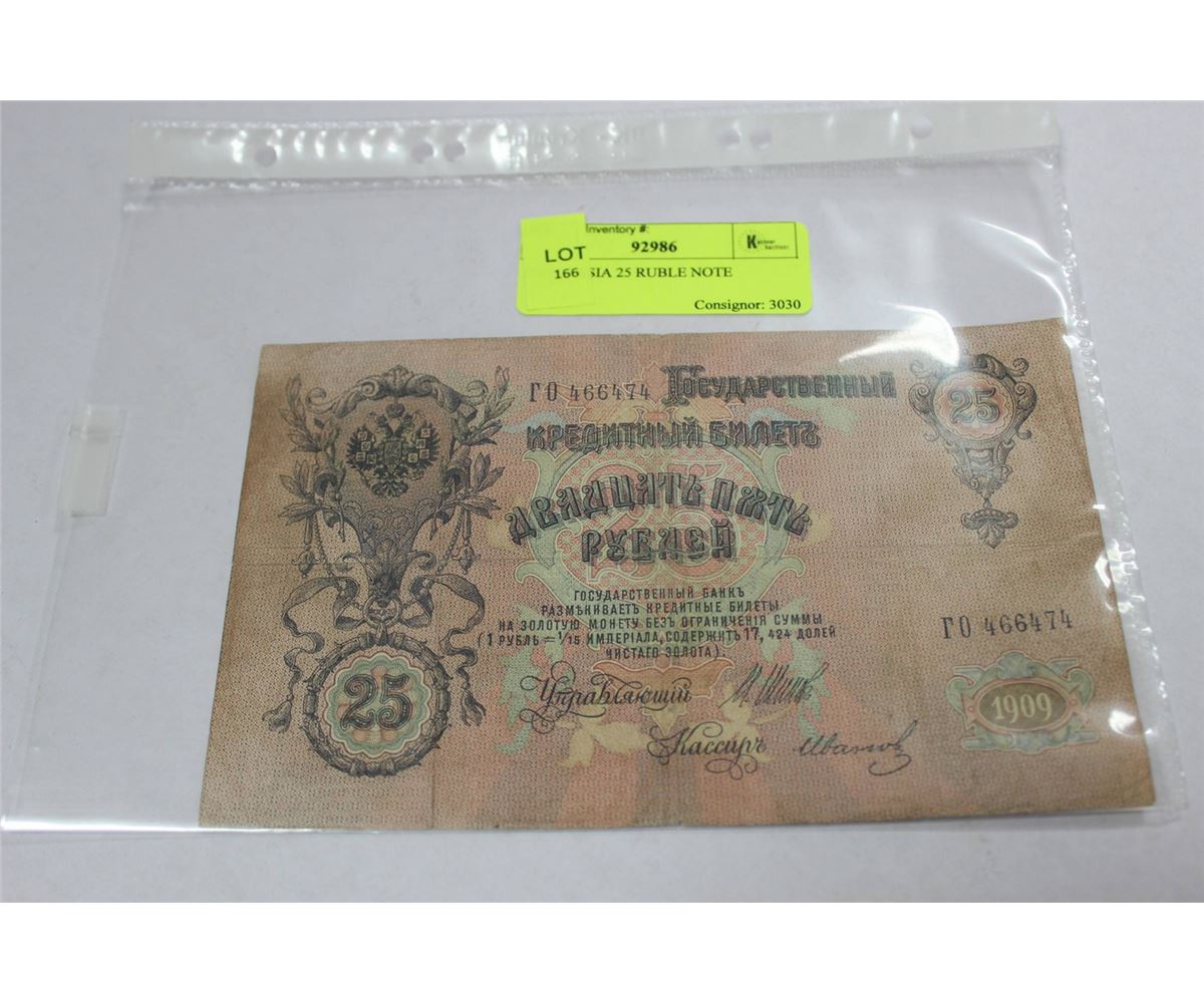 1909 RUSSIA 25 RUBLE NOTE