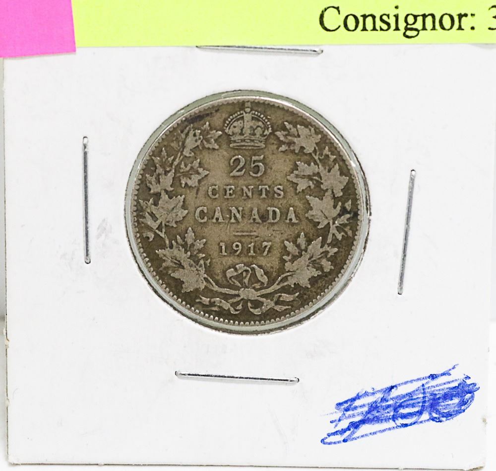 1917 CANADIAN GEORGE V SILVER 25 CENT COIN