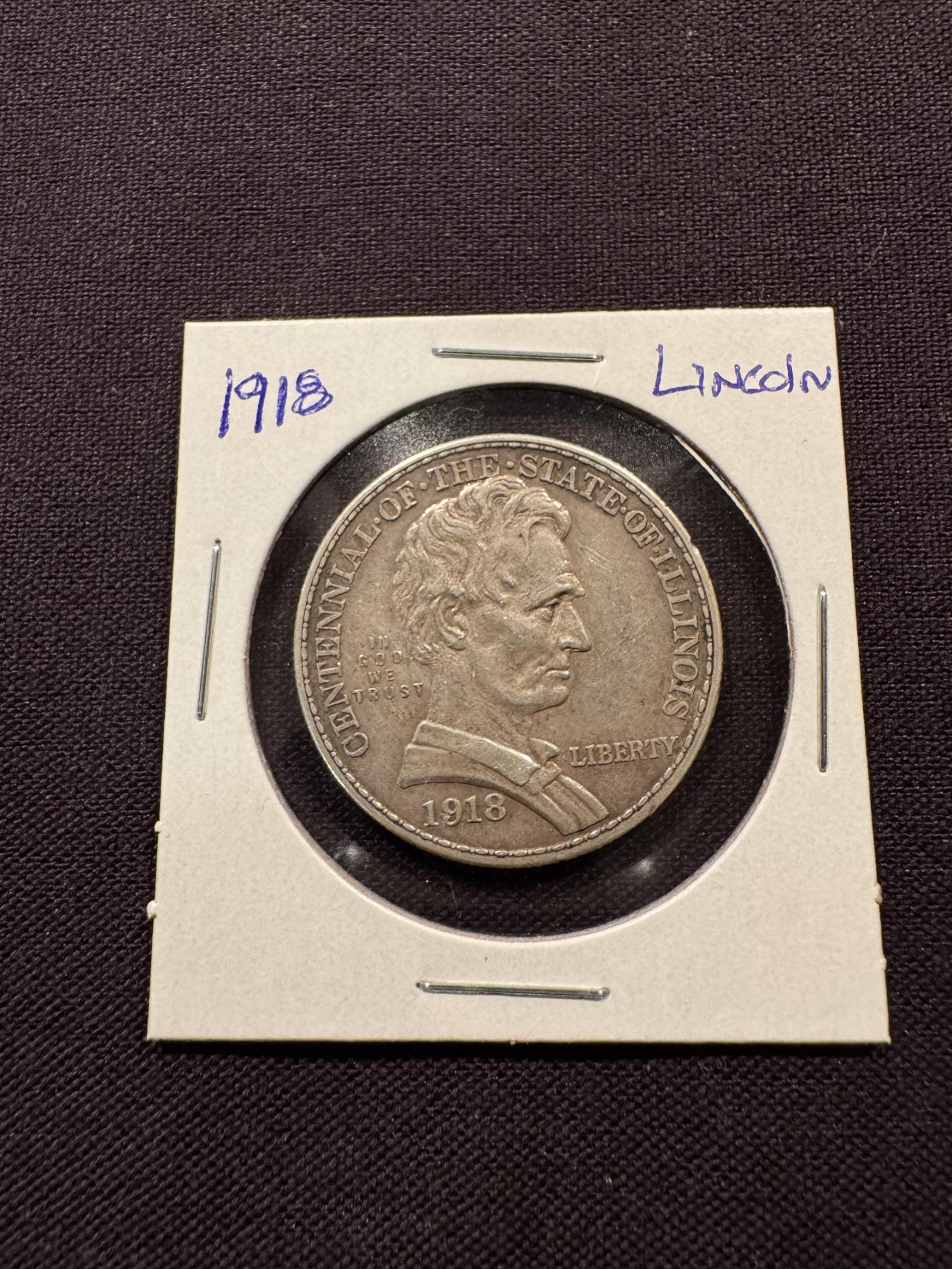 1918 Lincoln - Illinois United States 50 Cent Silver Half Dollar - Excellent Condition