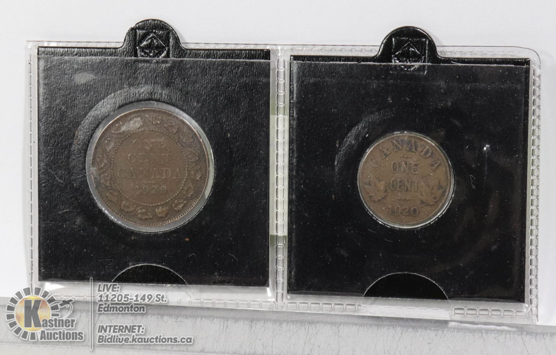 PART WAY THROUGH 1920 CANADA REDUCED THE SIZE OF THE 1 CENT COIN FROM THE LARGE TO SMALL VERSIONS. THIS IS A SET OF BOTH TYPES WITH LARGE CENT BEING LOWER MINTAGE.