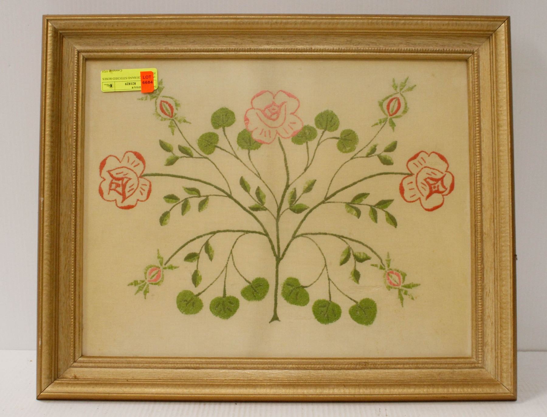 1920S CZECH HAND STITCHED ROSES FRAMED