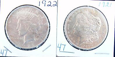 1921 MORGAN AND 1922 PEACE SILVER DOLLARS