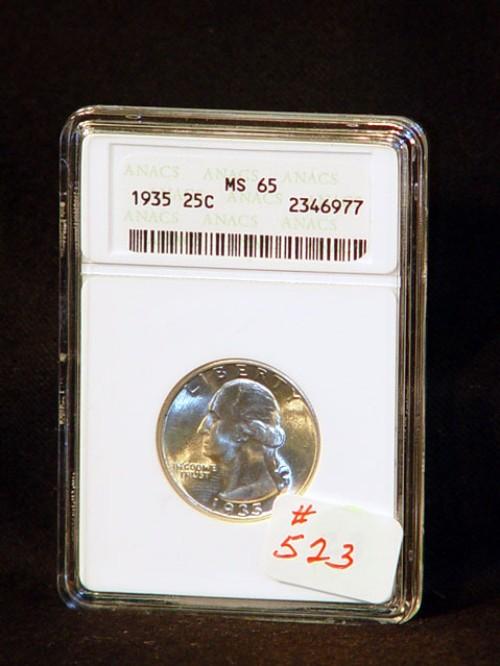 1935 WASHINGTON QUARTER CERTIFIED MS65
